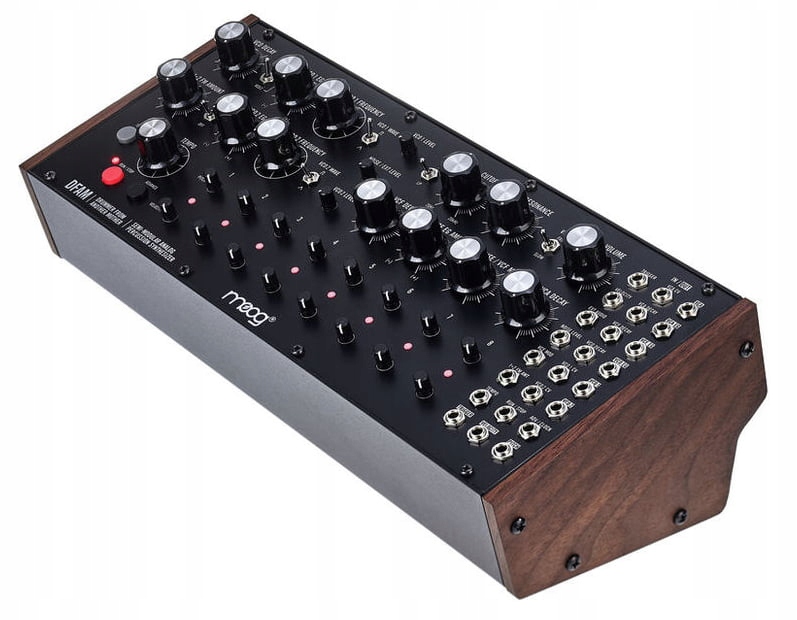 Moog DFAM «Drum From Another Mother» представляет собой полумодульный аналоговый синтезатор ударных . Будучи первым расширением экосистемы Moog, DFAM представляет собой выразительный синтезатор ударных для творческих паттернов и ритмов ударных. Благодаря интуитивному управлению можно мгновенно создавать ритмические композиции из людей любого возраста, даже без предварительного знания.