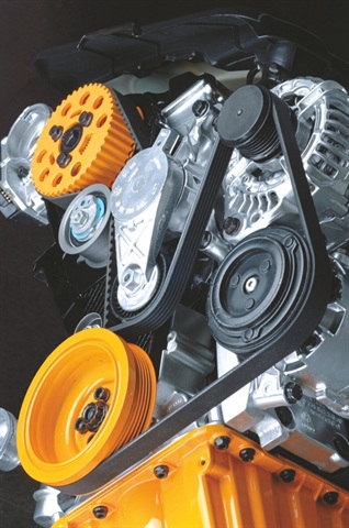 Многополиклиновой ремень применяется в современных двигателях и представляет собой усовершенствованную форму клинового ремня. Он используется для привода агрегатов, установленных на двигателе, таких как генератор, насос охлаждающей жидкости, компрессор кондиционера и насос гидроусилителя рулевого управления. Он идеально подходит для сложных приводов, переносит тяжелые грузы и занимает мало места. В поликлиновых передачах он может одновременно приводить в движение несколько агрегатов.
