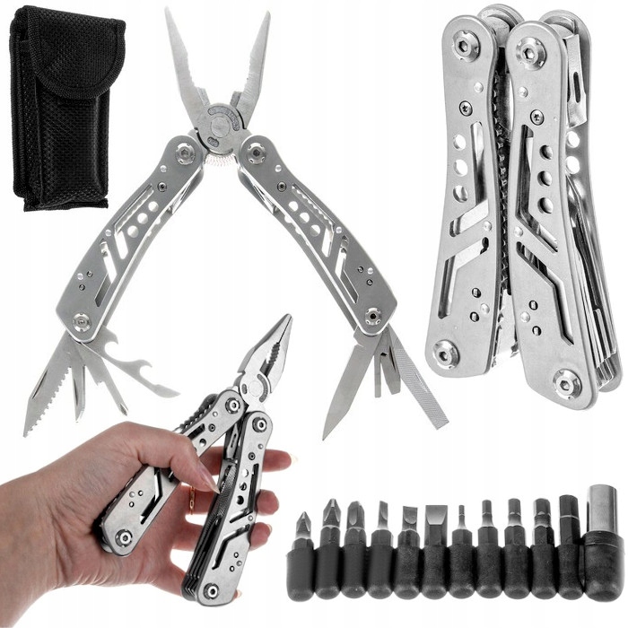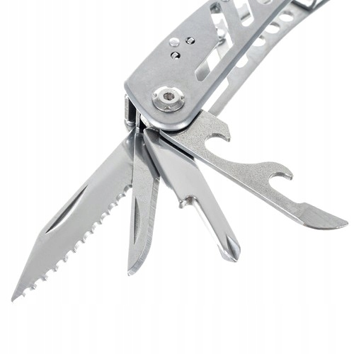 нож, пильное полотно, плоскогубцы, открывалка для бутылок, консервный нож, отвертка, карманный нож, плоскогубцы, резак и многие другие.