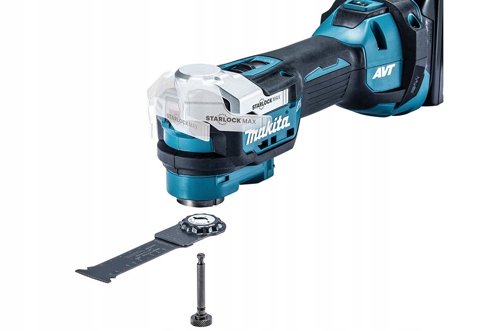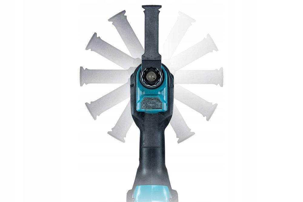 МНОГОФУНКЦИОНАЛЬНЫЙ ИНСТРУМЕНТ оснащен бесщеточным двигателем, свойства которого повышают долговечность модели. Благодаря технологии XPT двигатель защищен от влаги и пыли, что еще больше подчеркивает его безотказную работу. Технология AVT эффективно снижает вибрацию, тем самым повышая точность и безопасность операций. Держатель инструмента STARLOCK облегчает замену насадки, позволяя быстро переоснастить модель без инструментов – в зависимости от типа рабочей насадки оператор может делать пазы в дереве, резать керамику, резать и шлифовать края и углы, удалять раствор и силикон или замазка от оконных рам, а также отрывание материалов от пола. Благодаря высокой скорости колебаний устройство обеспечивает эффективную работу – возможность выбора скорости с помощью ручки позволяет настроить работу модели под нужды пользователя. Плавный пуск и работа на постоянной скорости обеспечивают плавную работу. Оператор может установить для выбранного рабочего элемента одну из 12 настроек угла каждые 30°. Антиперезапуск повышает защиту здоровья оператора, защищая от непреднамеренного запуска инструмента после подключения аккумулятора (в комплекте нет). Узкая конструкция делает модель очень удобной для работы в любом рабочем положении. Светодиод с функцией задержки затемнения повышает безопасность и точность работы в местах без освещения.