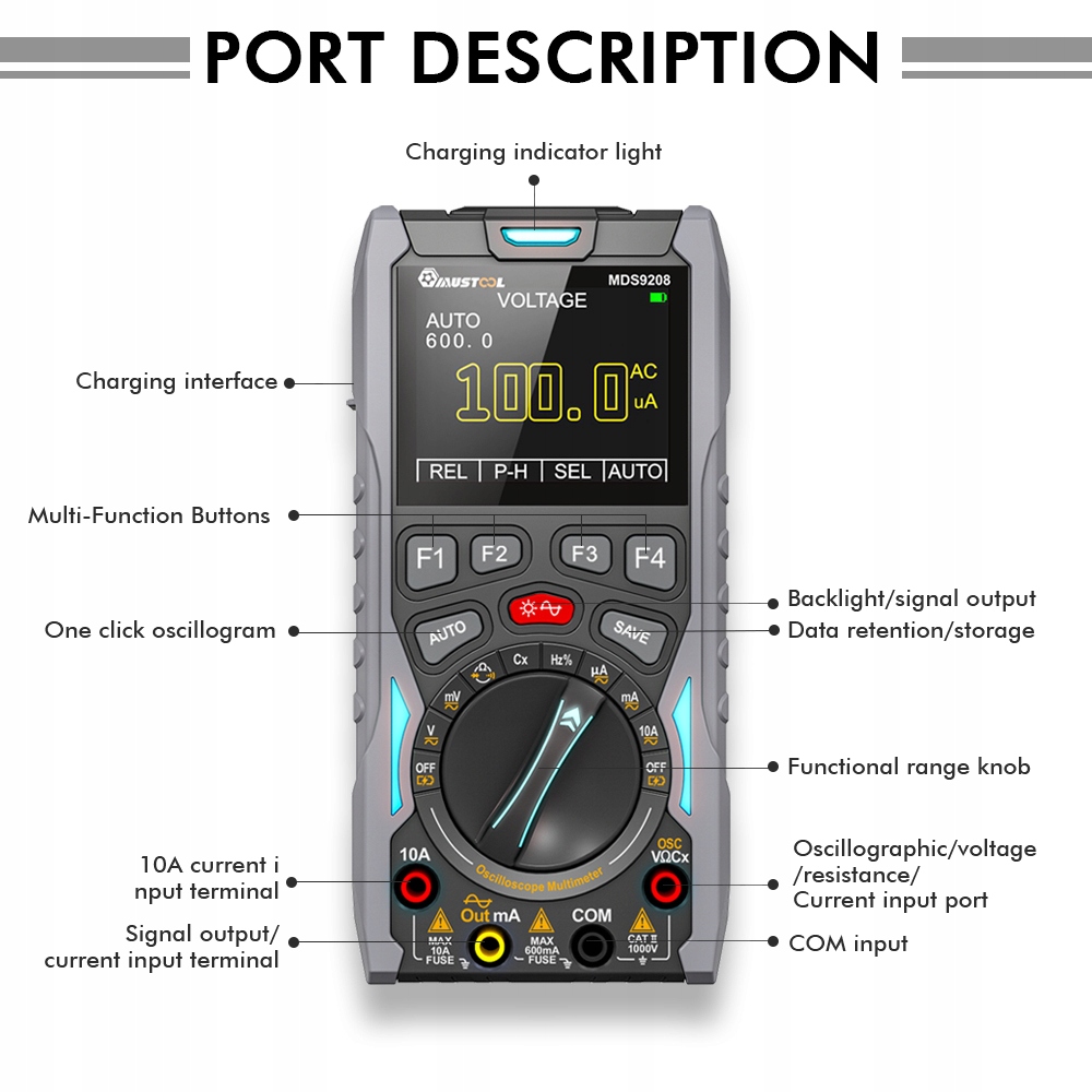 MUSTOOL® MDS9208 С ПОЛНЫМИ ФУНКЦИЯМИ МУЛЬТИМЕТРА, ОСЦИЛЛОСКОПА И ФУНКЦИОНАЛЬНОГО ГЕНЕРАТОРА