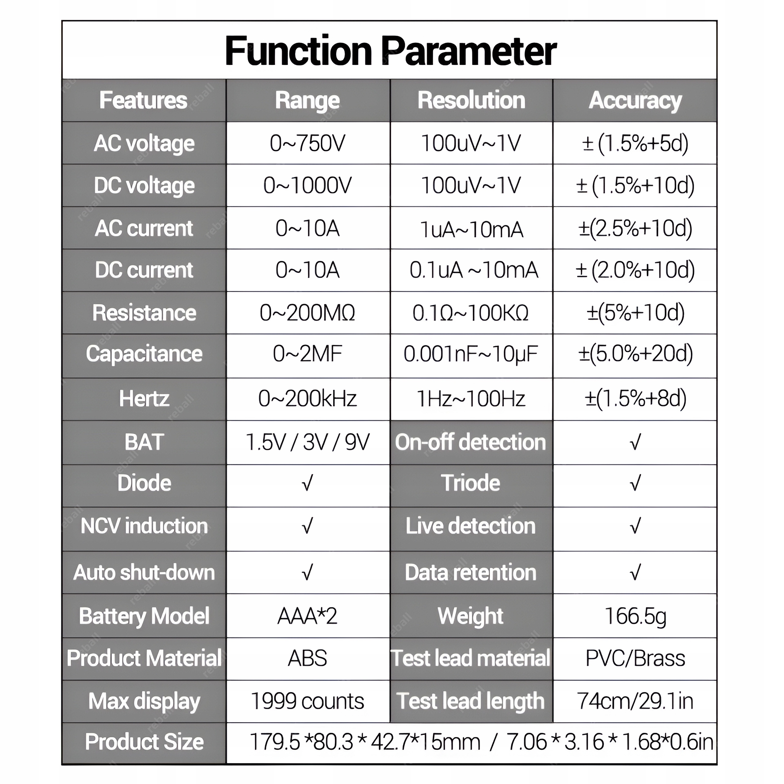 ✔ мультиметровый areng sz08 (без батарей) - 1 ПК.