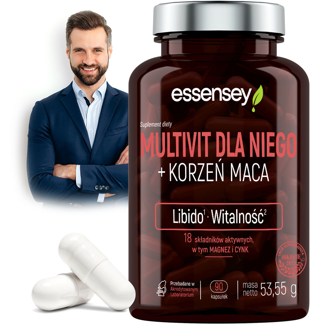 Биологически активная добавка ESSENSEY MULTIVIT FOR HIM содержит экстракт корня маки, который помогает поддерживать естественную сексуальную активность и энергию, а также оптимальную выносливость и жизненный тонус. [2]