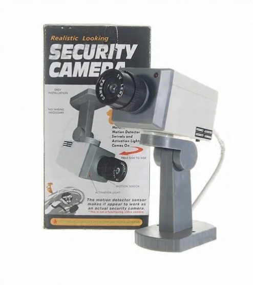 Макет камеры представляет собой качественную имитацию настоящей камеры видеонаблюдения. Мигающий красный светодиод создает впечатление круглосуточного наблюдения.