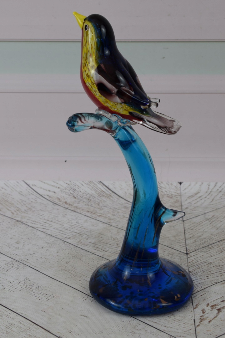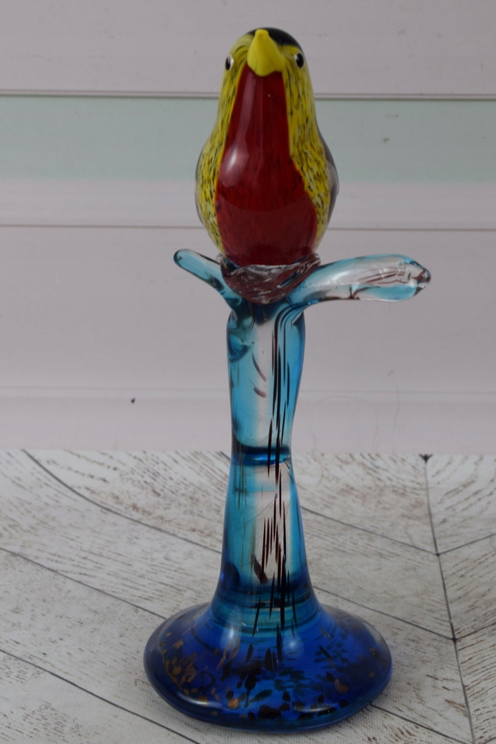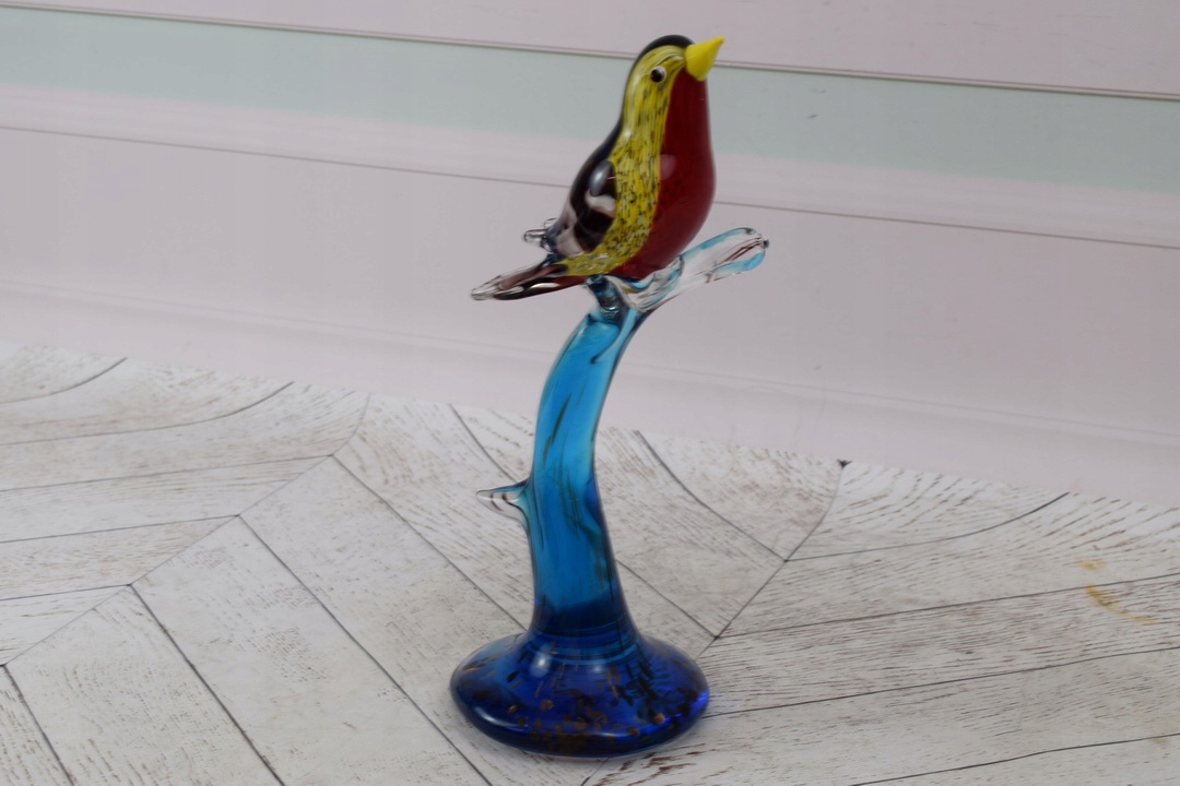 Murano Glass Glass - красочная птица на ветке - фигурная скульптура подарок