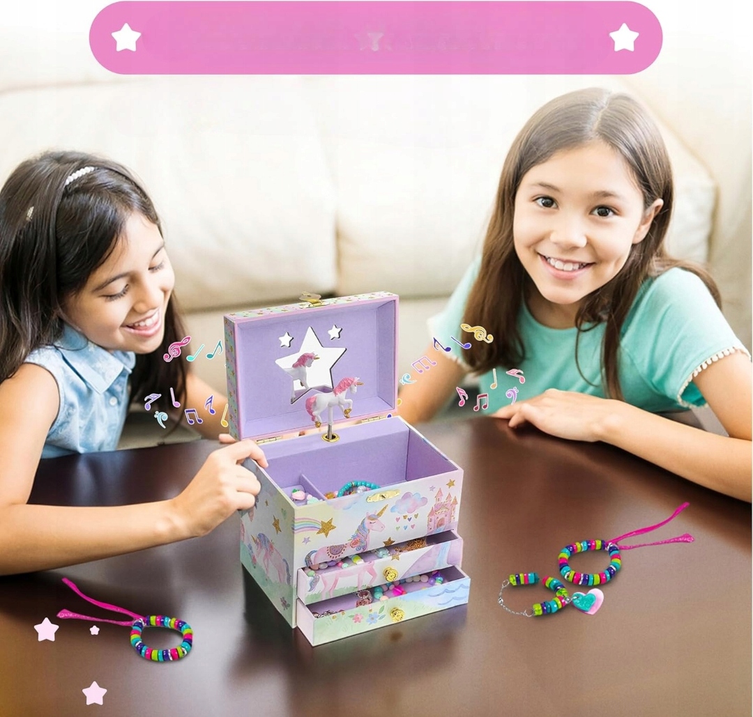 Наша музыкальная коробка с мотивом единорога облегчает организацию ювелирных изделий для маленьких девочек. Два просторных нижних ящика позволяют храни подарка для девочек, браслетов, серьги и других сувениров. Это не только поможет поддерживать порядок в комнатах, но и имеет плавную лавандовую подкладку, которая может помешать царапинам ребенка.