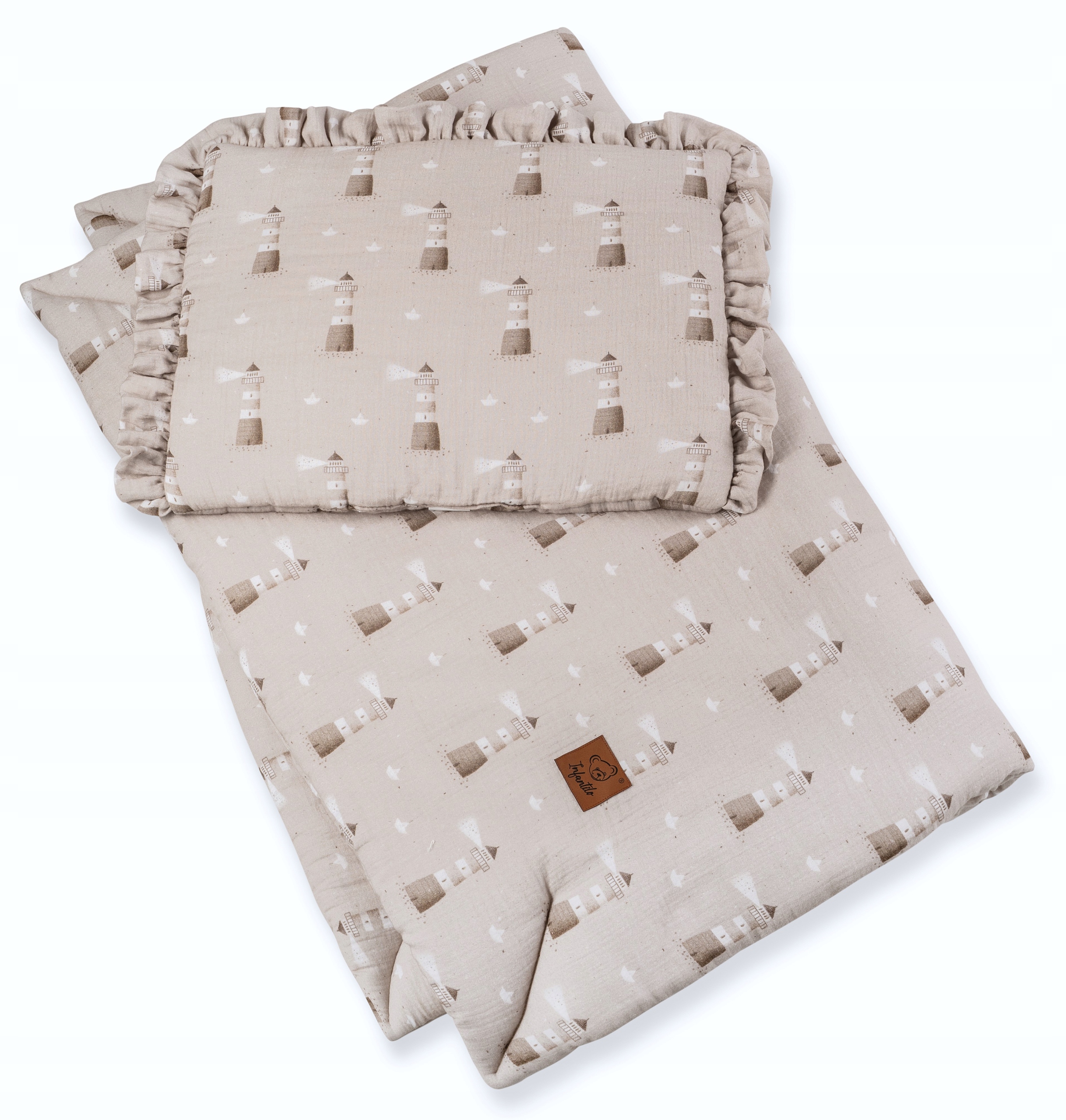 Муслиновое постельное белье с обчисткой и заполнением 120x90 ПЕЧАТЬ ИНФАНТИЛО H1> стеганое одеяло 120x90 см + подушка 40x50CM + FRILL H1> Паттерн: Lighthouse H1>
