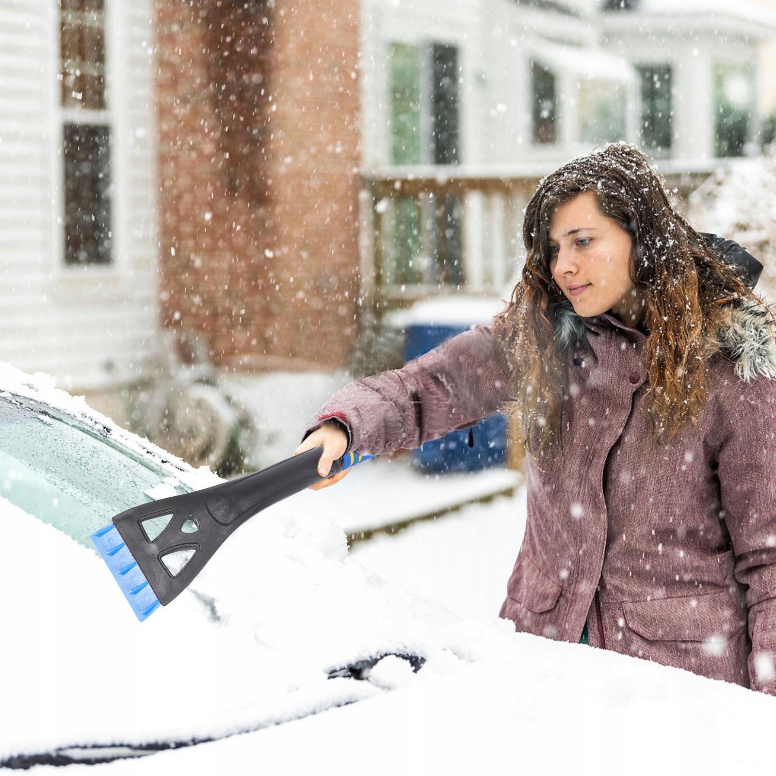Эта снежная лопата изготовлена из железа и пластикового материала с хорошим прикосновением. Эта снежная лопата может быть использована, чтобы легко удалить густой снег или лед на переднем заднем окне автомобиля. Его лопата, которая позволяет легко снимать кусочки снега и не царапать стекло или краски.