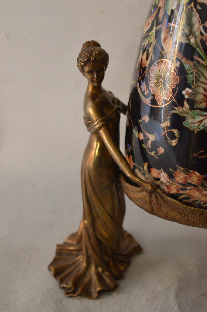 Здравствуйте, сегодня я хотела бы предложить Вам фарфоровую вазу музейного качества. Ваза покрыта бронзой, красивые бронзовые украшения на самом деле намного красивее, чем на фотографиях.