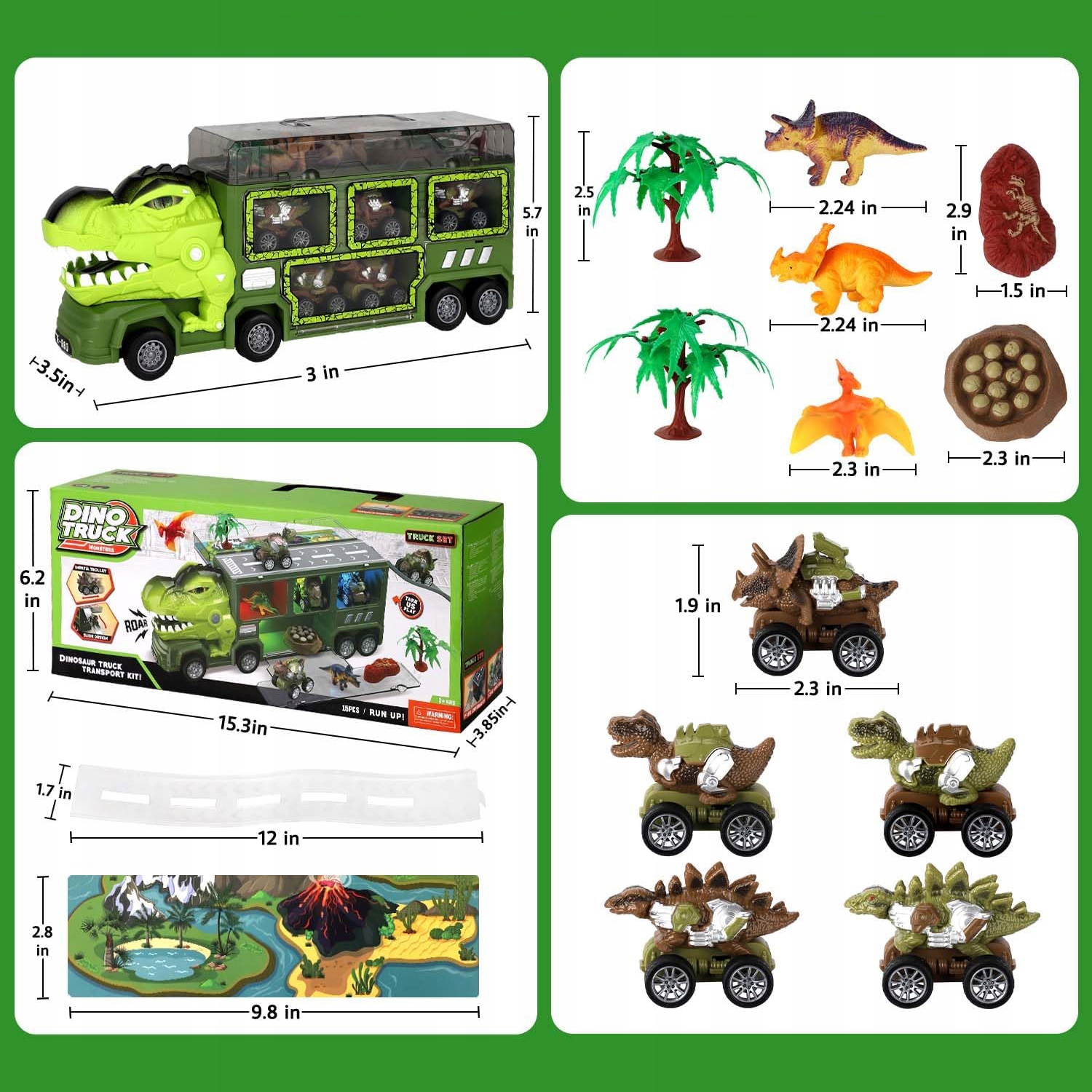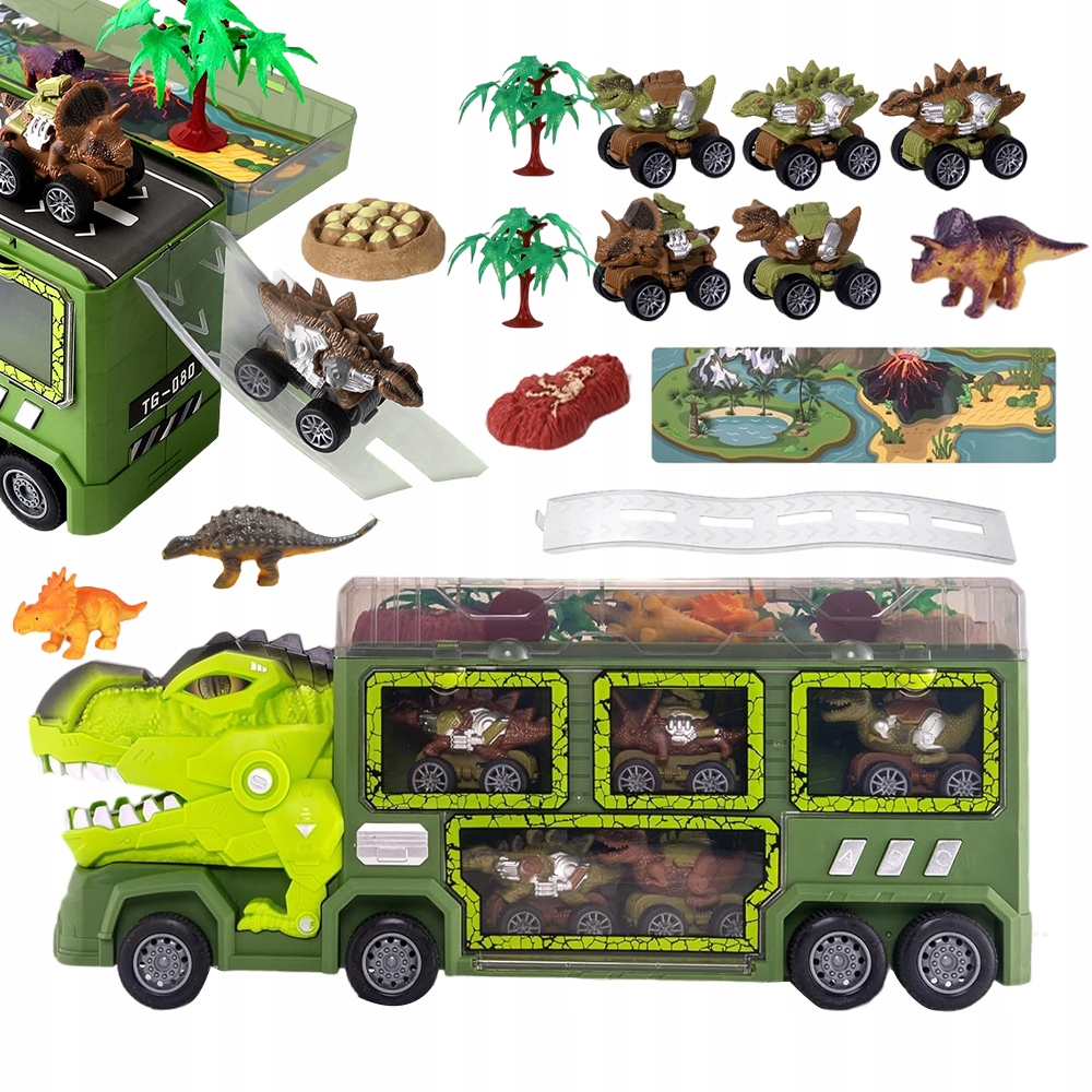 🏡 Грузовик динозавров, грузовик тираннозавра с 8 фигурками динозавров, транспортные автомобили, игровые коврики, яйца динозавров ›