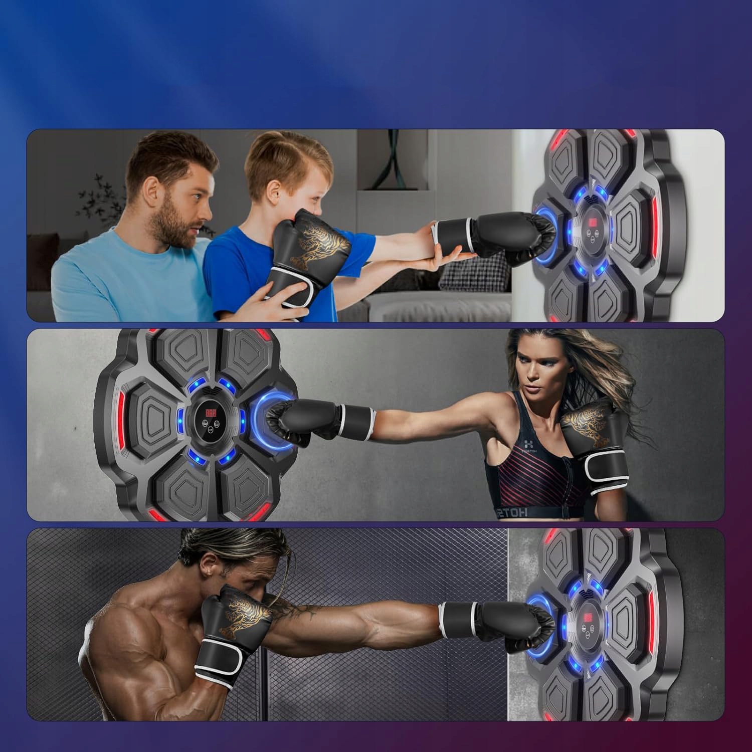 🥊🥊【 Поддерживает музыку Bluetooth】 Boxing Machine оснащена улучшенными динамиками и звуком звука, благодаря тому, что вы будете погружены во время обучения. С другой стороны, вы также можете выбрать свои любимые песни через Bluetooth во время обучения по боксу. Сочетание вашей любимой мигающей музыки в ритме и отличных осветительных эффектах, в идеале синхронизированной со мной, делает обучение боксам более увлекательным и захватывающим.