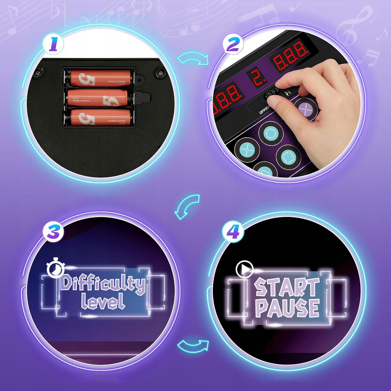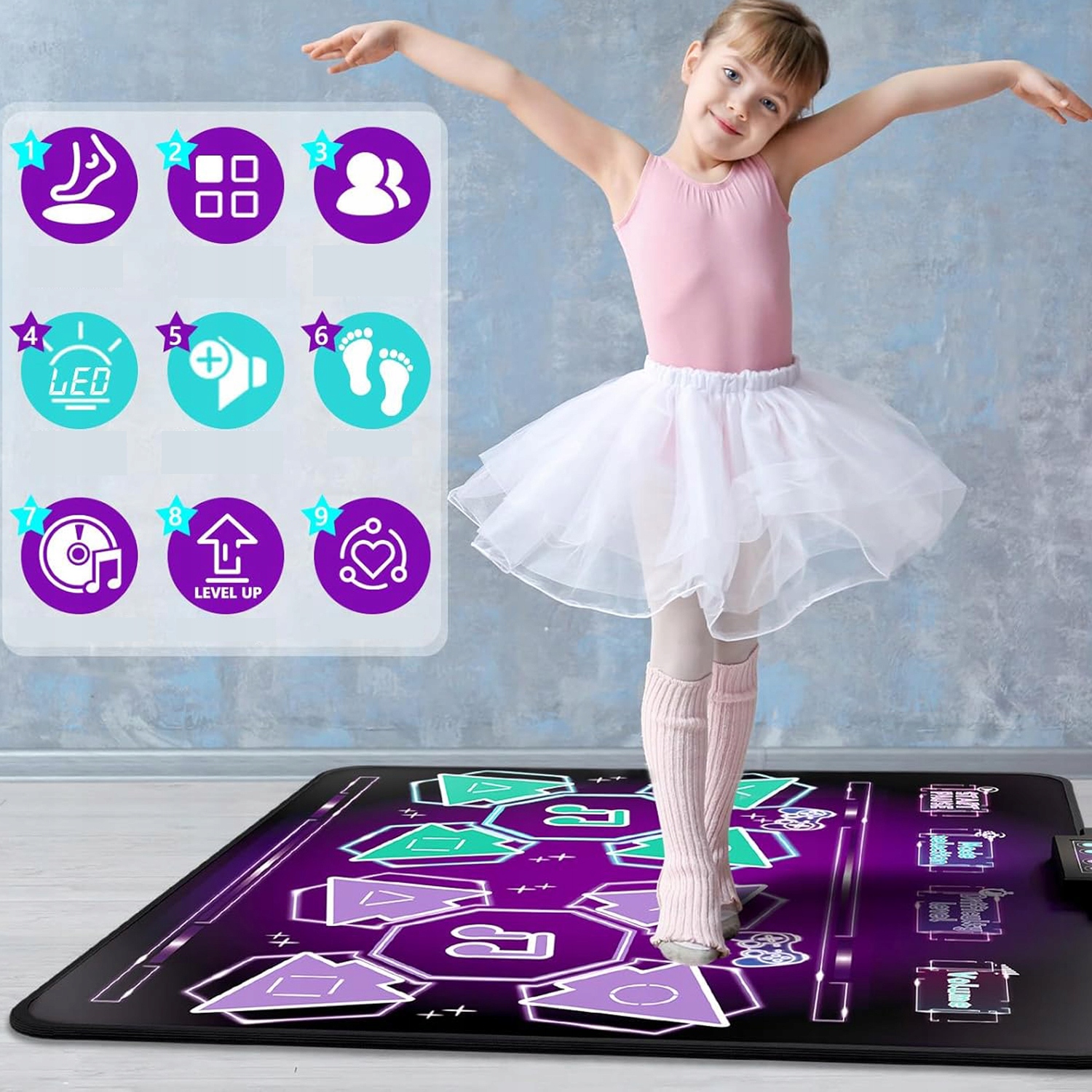 💃 💃 💃tryb одного игрока на танцевальном мате имеет 8 уровней танцевальных задач, каждый с 3 уровнями сложности. Следуйте ритму встроенной музыки и прыгайте к мигающим советам на танцевальном коврике, чтобы начать игру Challenge. Идеальный подарок на день рождения на 3, 4, 5, 6, 7-летняя девочка, творческая рождественская игрушка.