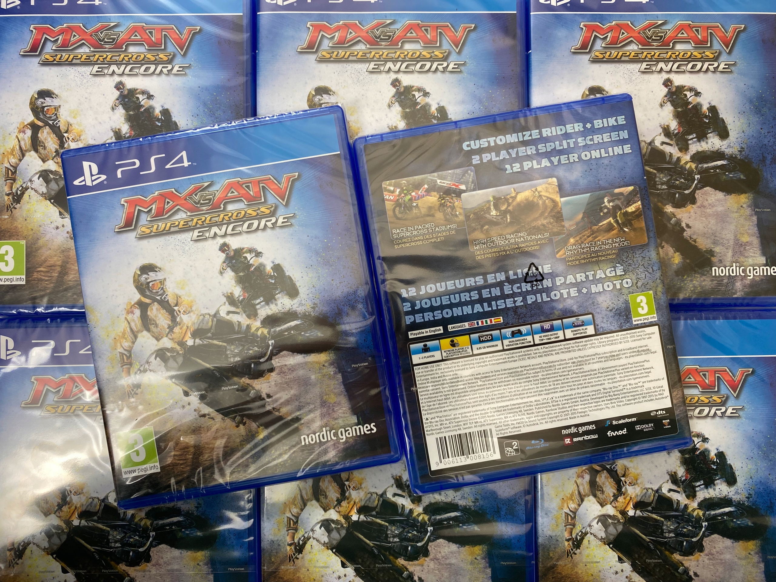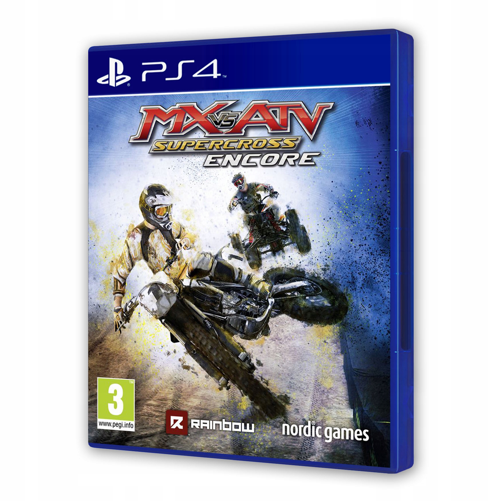 MX против ATV Supercross Encore - это гоночная игра ловкости о кросс -мотоциклах для консоли PlayStation 4. Название, как и его прототип 2014 года, был разработан Nordic Games Studio и предлагает ряд улучшений по сравнению со стандартной версией.