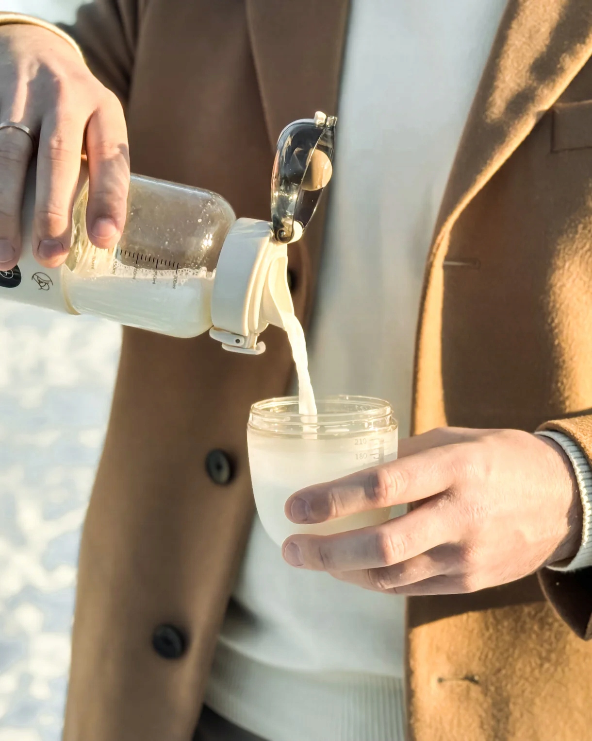 Беспроводной дизайн позволяет использовать устройство везде, где нет доступа к кухне – в парке, в машине или в кафе. Компактная форма поместится в любую сумку, а тихая работа, легкая конструкция и интуитивно понятное управление делают его идеальным спутником на любой прогулке.