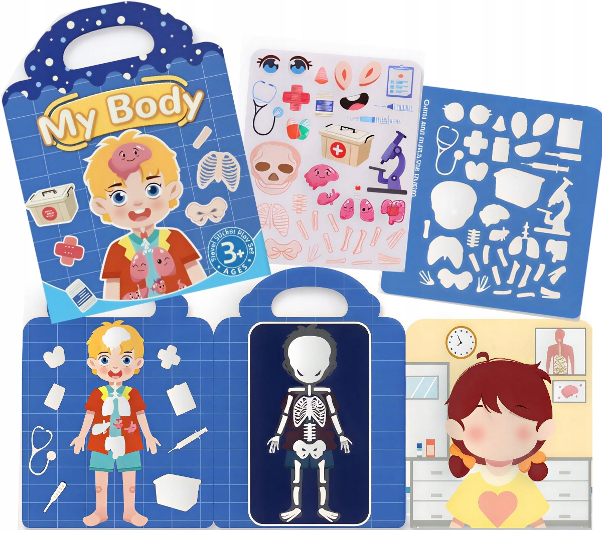 Малышка может самостоятельно расставлять наклейки с изображением частей тела, органов и элементов анатомии, отклеивать их и наклеивать обратно, создавая различные композиции и сценки. Это прекрасное сочетание обучения, веселья и воображения - без экранов!