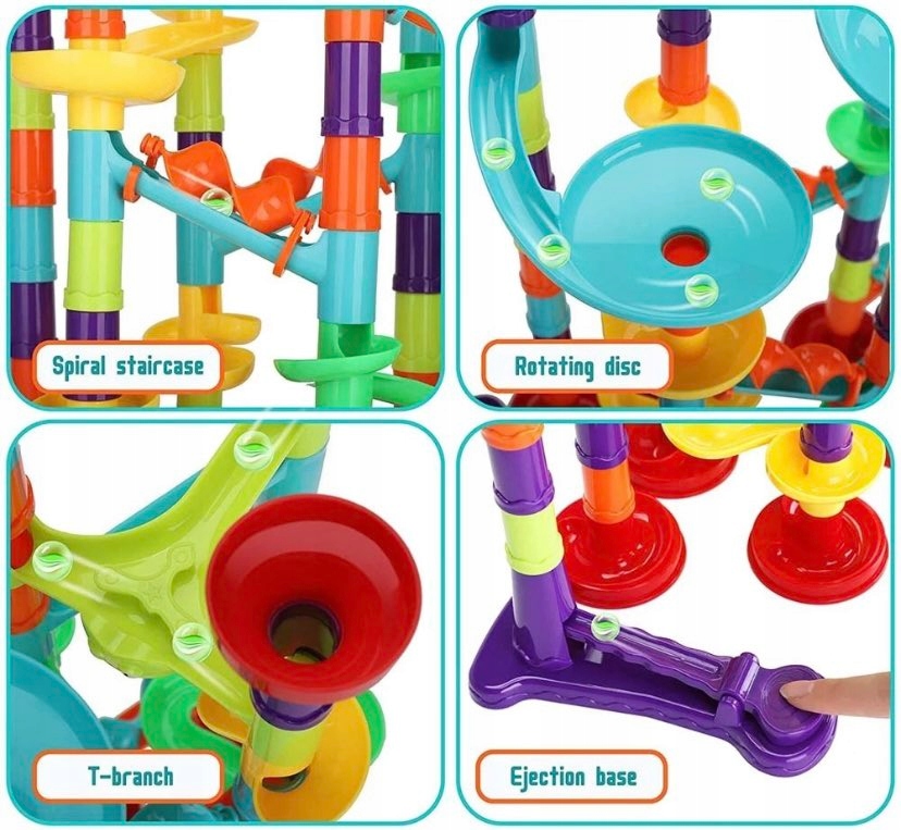 ✅Творческое развлечение: Благодаря кубикам различной формы и размера дети могут создавать свои собственные дорожки для шариков, что развивает их творческие способности и дизайнерские навыки.