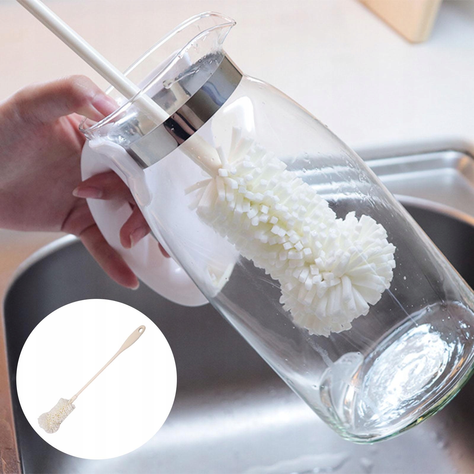 Щетка для чистки бутылок с водой с губкой и длинной ручкой позволяет легко чистить всю внутреннюю поверхность бутылочек. Мягкая губка не царапает бутылочки и соски.