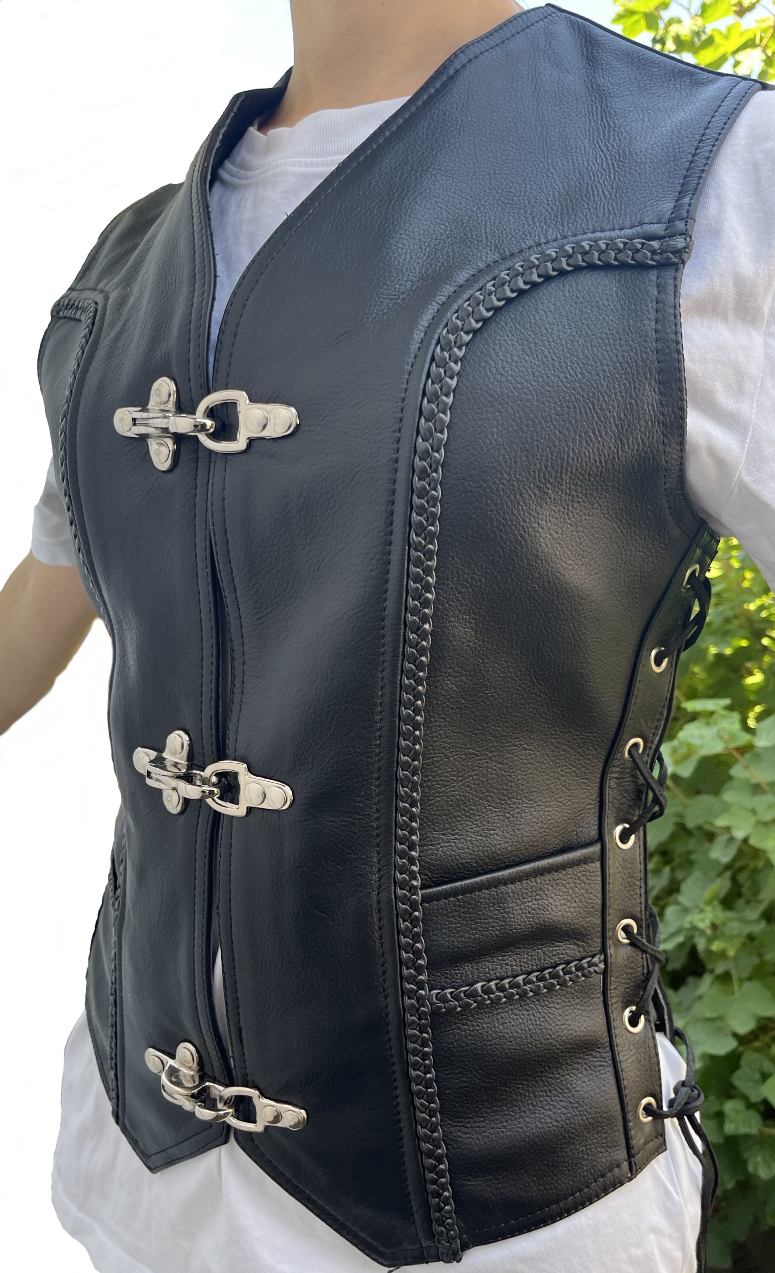 Женский кожаный жилет Идеально подходит для мотоцикла, Боковая регулировка, Декорирован!