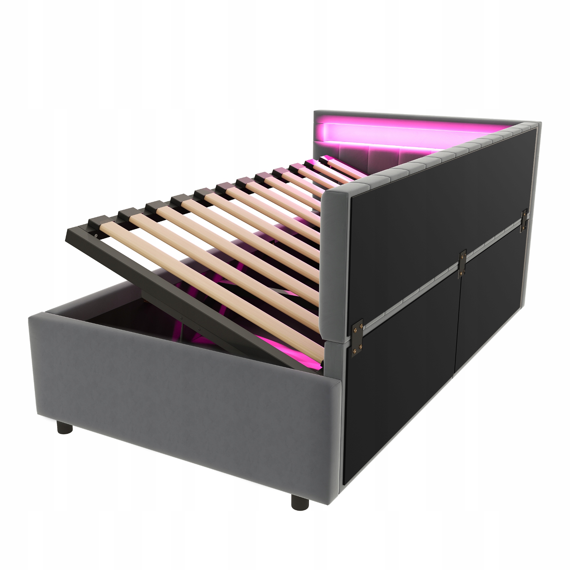 Кровать с мягкой обивкой Диван с функцией сна LED Гидравлический 90x200см серый