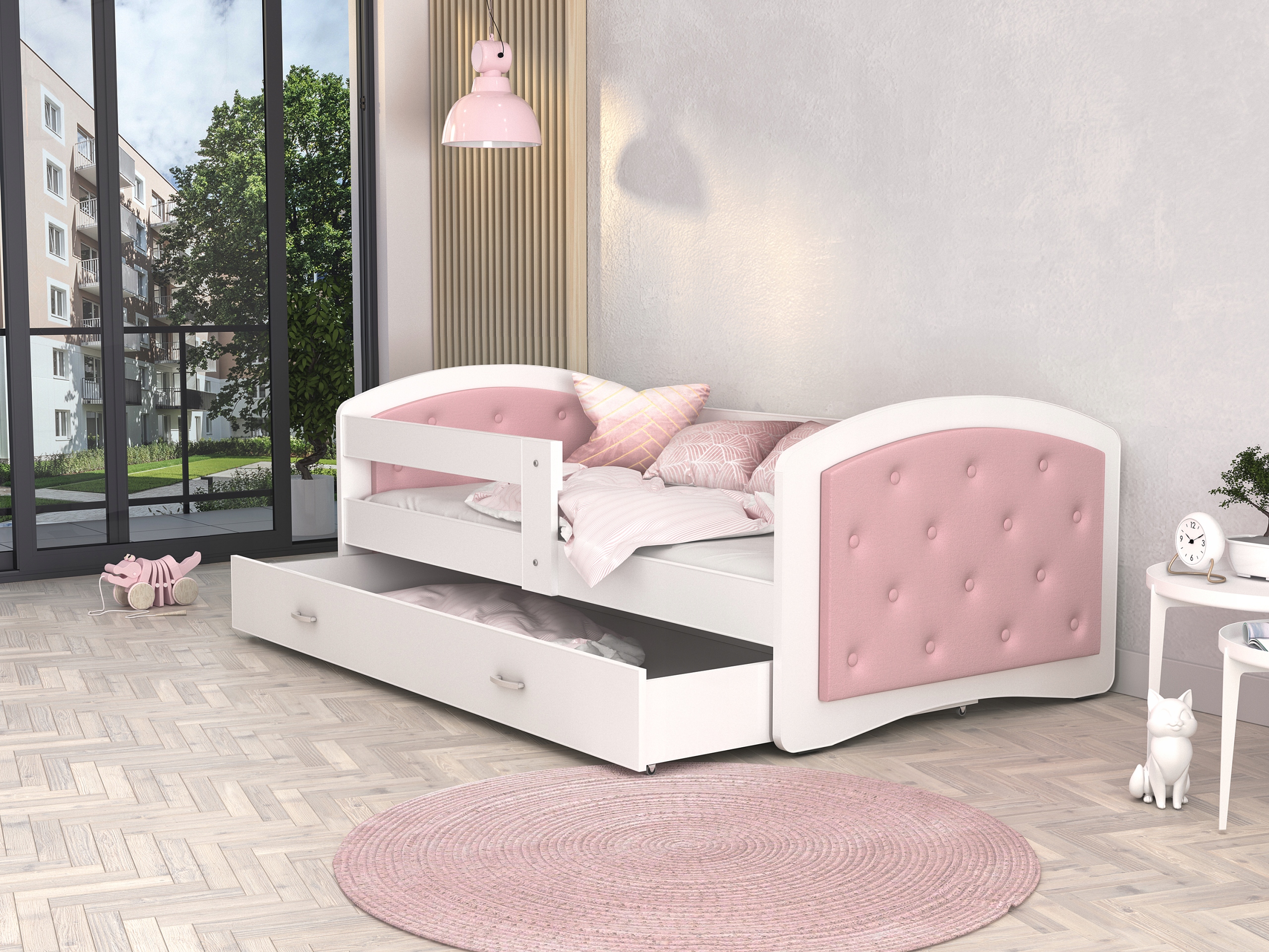 изголовье: пудрово-розовый, корпус: белый