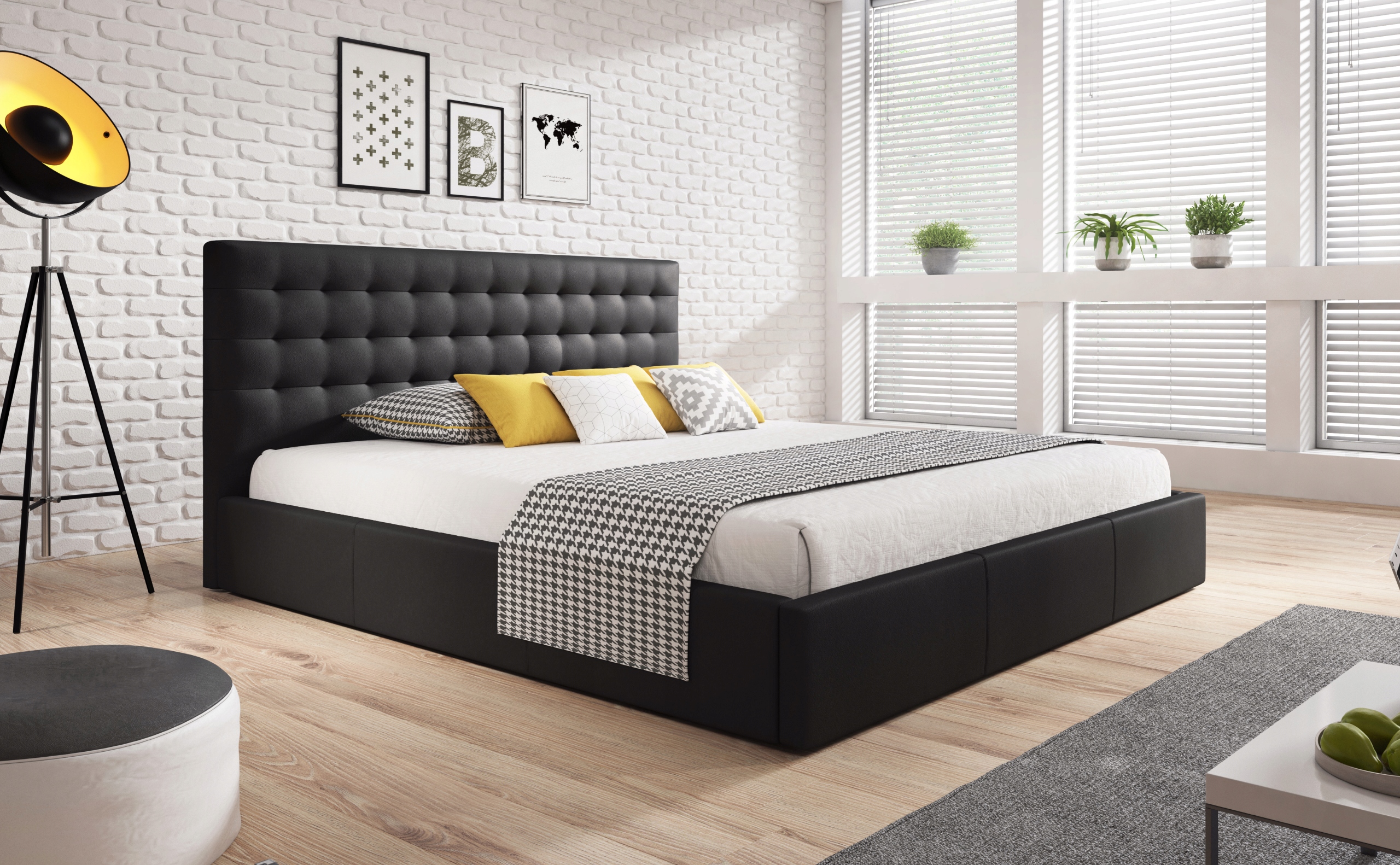 Кровать Madrid 9100 из черной экокожи