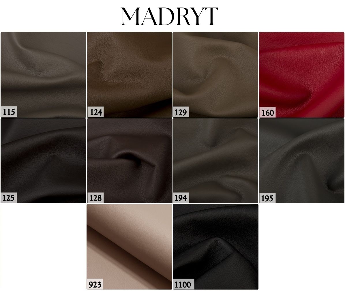 Эко-кожа Madryt прекрасно имитирует внешний вид натуральной кожи, но в отличие от нее гораздо прочнее и устойчивее к загрязнениям и повреждениям. Ткань изготовлена из полиуретана, поэтому на ощупь напоминает натуральную кожу.