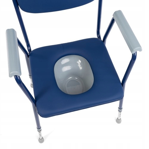 Кресло-унитаз с обивкой BLUE-TIM – это вспомогательное устройство, помогающее пользователю выполнять гигиенические мероприятия. Рекомендуется людям, имеющим проблемы с самостоятельным передвижением, с нарушениями функций и ограничениями подвижности, а также людям, потерявшим способность самостоятельно сидеть и вставать. Кресло выполняет функцию туалета благодаря санитарному контейнеру под сиденьем. Он облегчает физиологические действия пользователя и уход за ним.