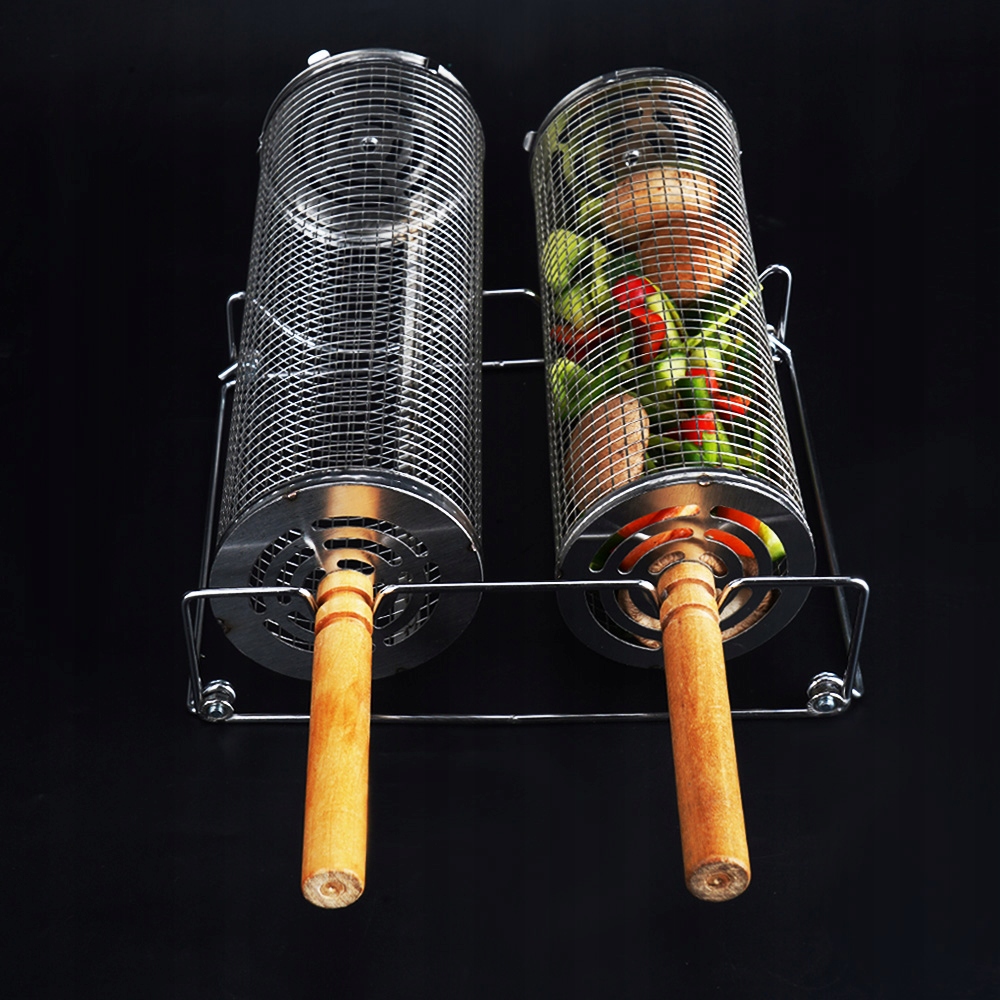 🏡 2 Цилиндрические, свернутые корзины для гриля из 304 из нержавеющей стали для мяса, стейков, рыбы, креветки, овощей · · -