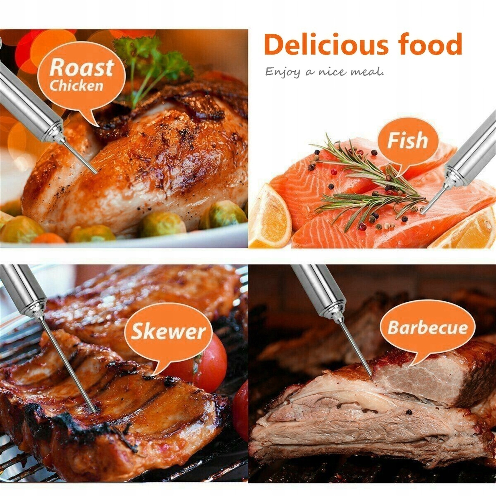 【Оболочный, коррозионный, плотный металлический материал, изготовленный из нержавеющей стали / цинк сплава 304, высокая прочность, инъекция высокотемпературных ингредиентов, не дает вредных веществ, прочные, устойчивые к коррозии, годы использования без ржавчины. Прочные иглы можно легко положить в мясо любого типа и плотно закрыты без утечек