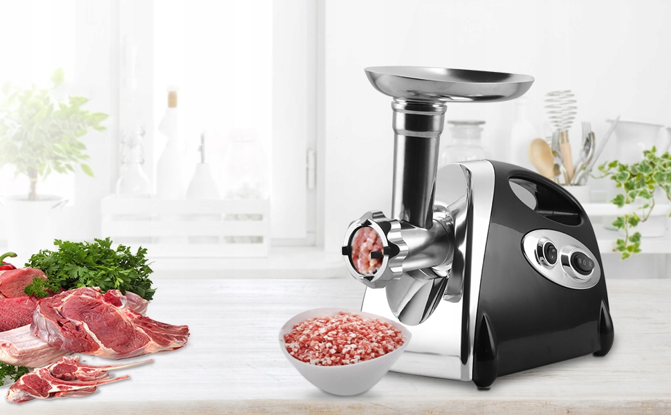 🥩 МЯСОРУБКА - Эта мясорубка представляет собой электроинструмент мощностью 2800 Вт, она может измельчать мясо и овощи, идеально подходит для измельчения мяса и приготовления начинки.