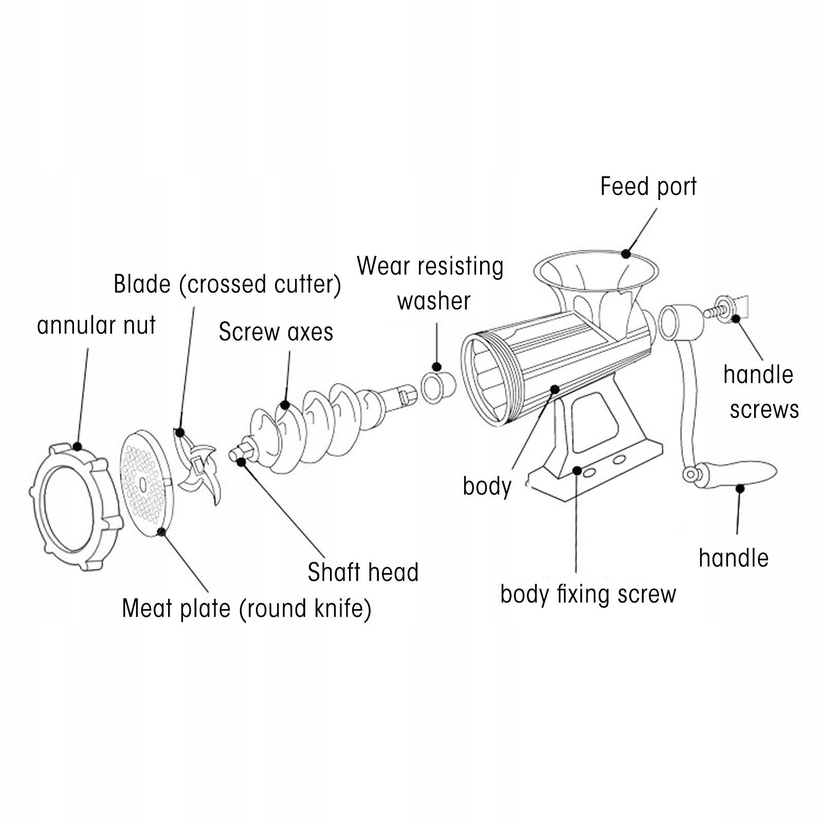 2. такая конструкция: эта ручная мясорубка имеет такую конструкцию и уникальный внешний вид, вам нужно поднести мясо к мясорубке и повернуть рукоятку.