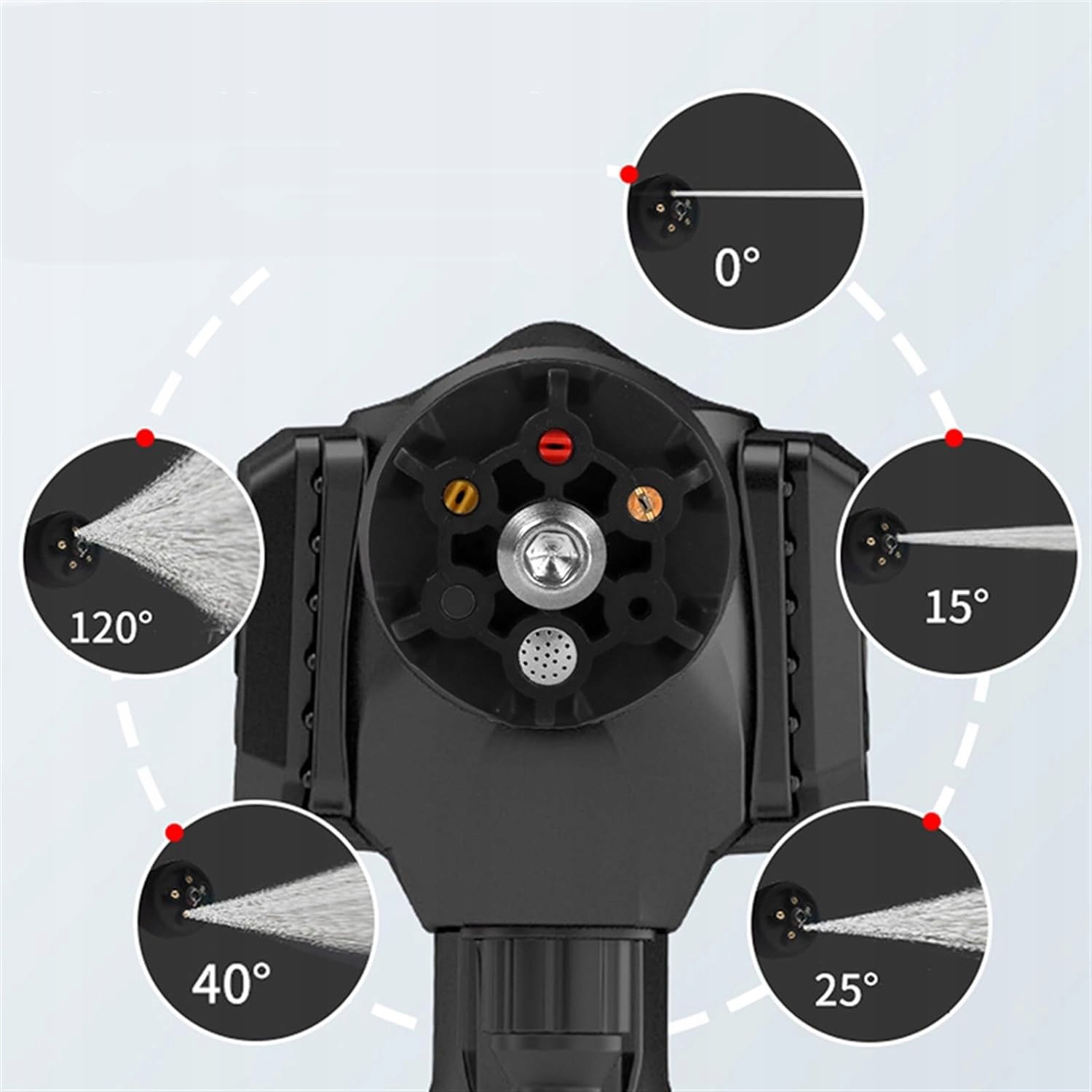Портативная автомобильная мойка высокого давления оснащена регулируемой насадкой высокого давления 6-в-1, которая позволяет вы можете легко переключать интенсивность струи (0°, 15°, 25°, 40°, режим вентилятора и режим душа).