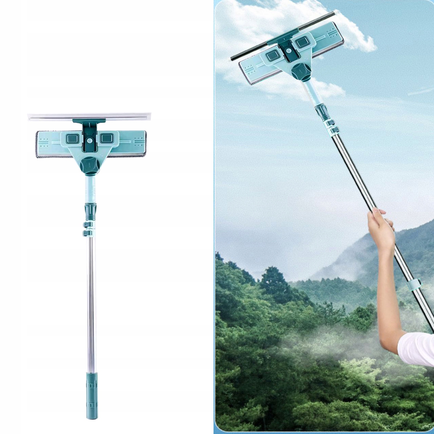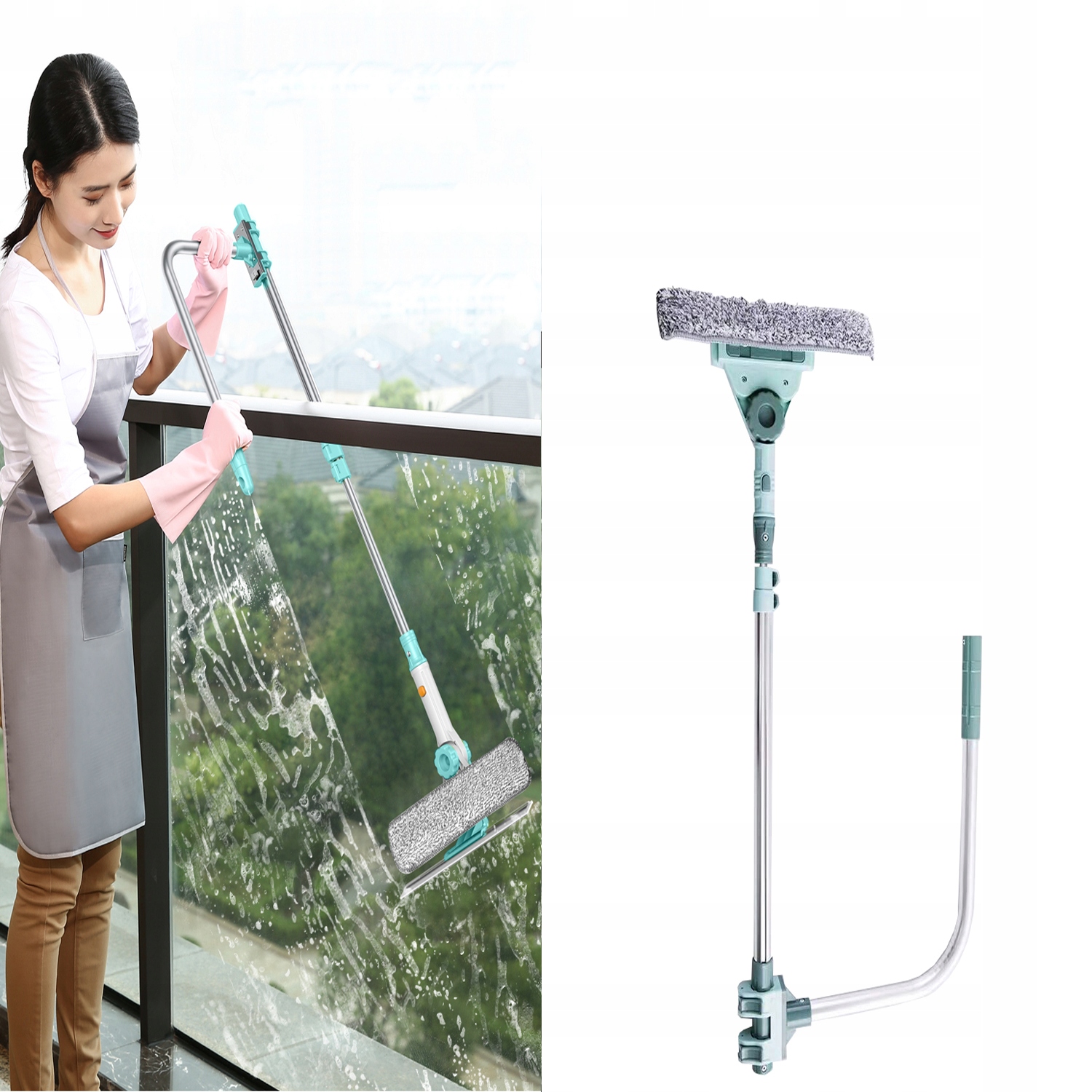 Телескопический мойщик окон Hooha может очищать стекло и вытирать сточные воды одновременно, а также может быть частью U-образного стержня для быстрой очистки окна снаружи, что удобно и быстро < /п>