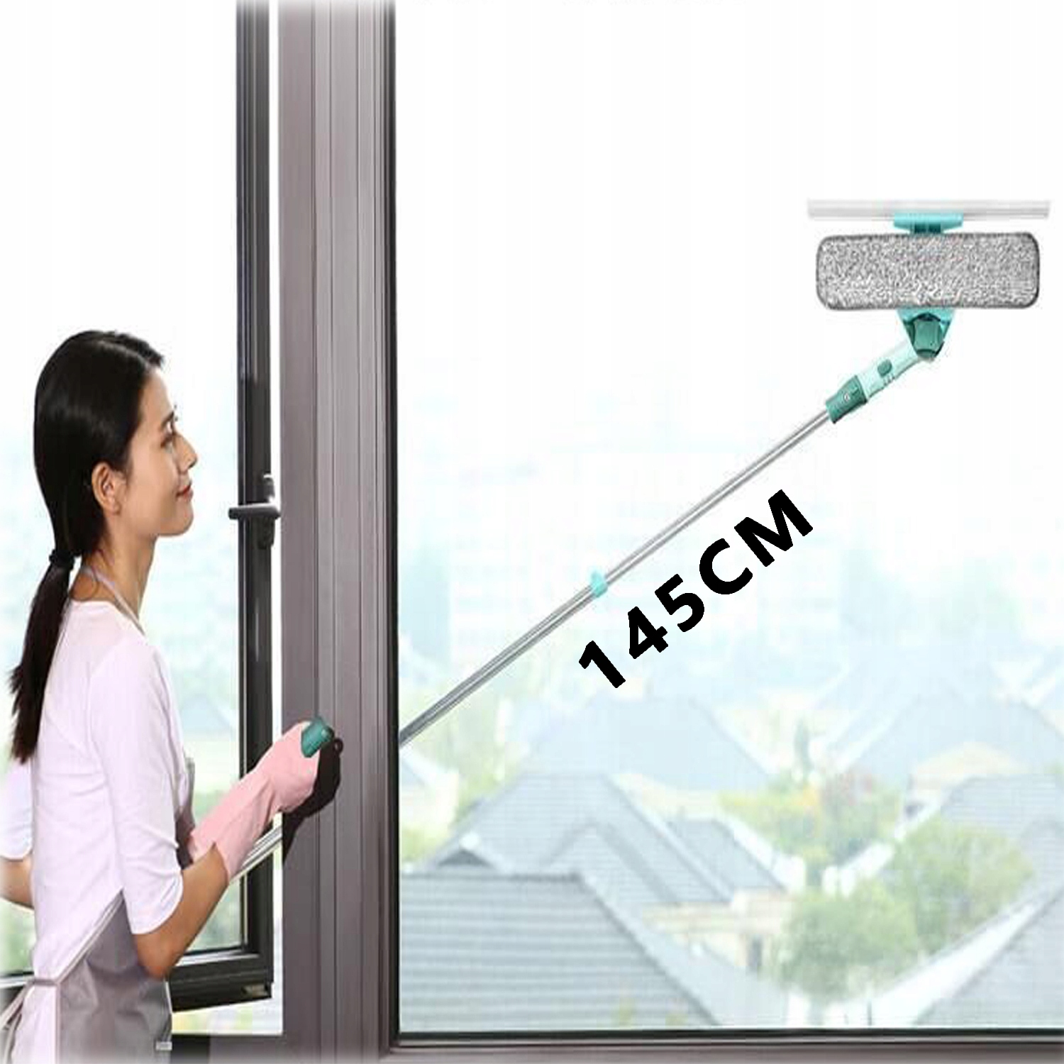 С помощью этой U-образной ручки-переходника вы можете мыть наружные окна, не стоя на высокой лестнице или в опасном месте. Благодаря телескопической стойке, которую легко удлинить до 1,45 м, ее легко убирать на разной высоте, воздействуя на стены, внешние окна и труднодоступные места. Эту верхнюю щетку для чистки также можно отрегулировать под углом фильтра и разместить в любом месте. Конструкция снята, поэтому ее можно вынуть и положить рядом с собой, она не используется.
