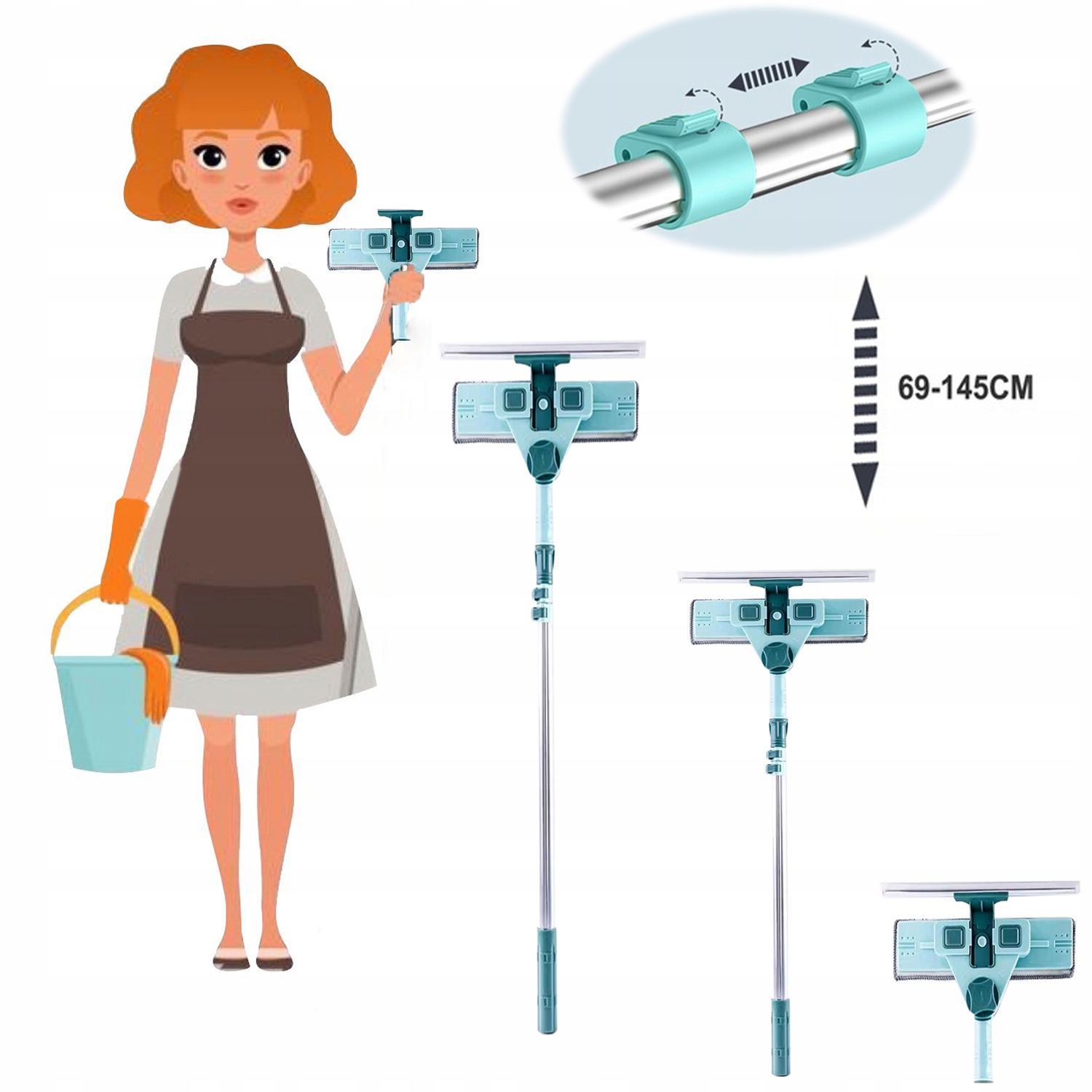 Телескопическая штанга работает в диапазоне 69–145 см в длину, а телескопическая штанга удлиняет штангу от 69 см до 145 см в случае окно или простое управление местами руками.