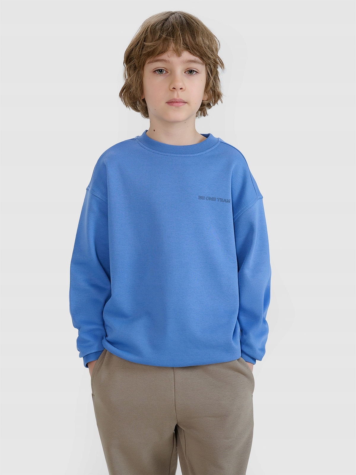 Толстовка для мальчиков без капюшона имеет средний вес капюшона 300 GSM, что делает его мягким и воздушным.