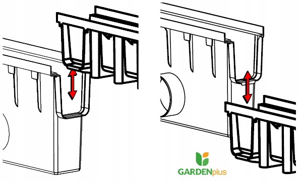 Комплект состоит из из чугунной решетки, сборной корзины, винта с крюком и сборника, подходящего для линейного водостока высотой 148 мм.