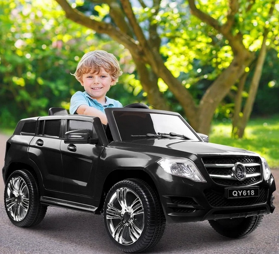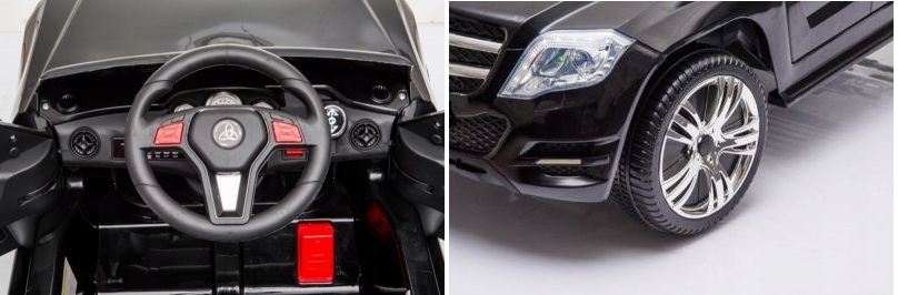 Внедорожник на аккумуляторе. Автомобиль имеет открывающиеся двери как со стороны водителя, так и со стороны пассажира. Он приводится в движение двумя мощными электродвигателями, питаемыми от двух аккумуляторов общей емкостью 12В. Автомобиль оснащен звуковыми эффектами, активируемыми кнопками, входом для MP3-плеера, портом USB, слотом для карт, регулятором громкости и светодиодными фонарями. С пульта дистанционного управления доступны 3 скорости движения. Безопасные уроки вождения проводятся с помощью прилагаемого пульта дистанционного управления 2,4G, который дает родителю полный контроль над автомобилем.