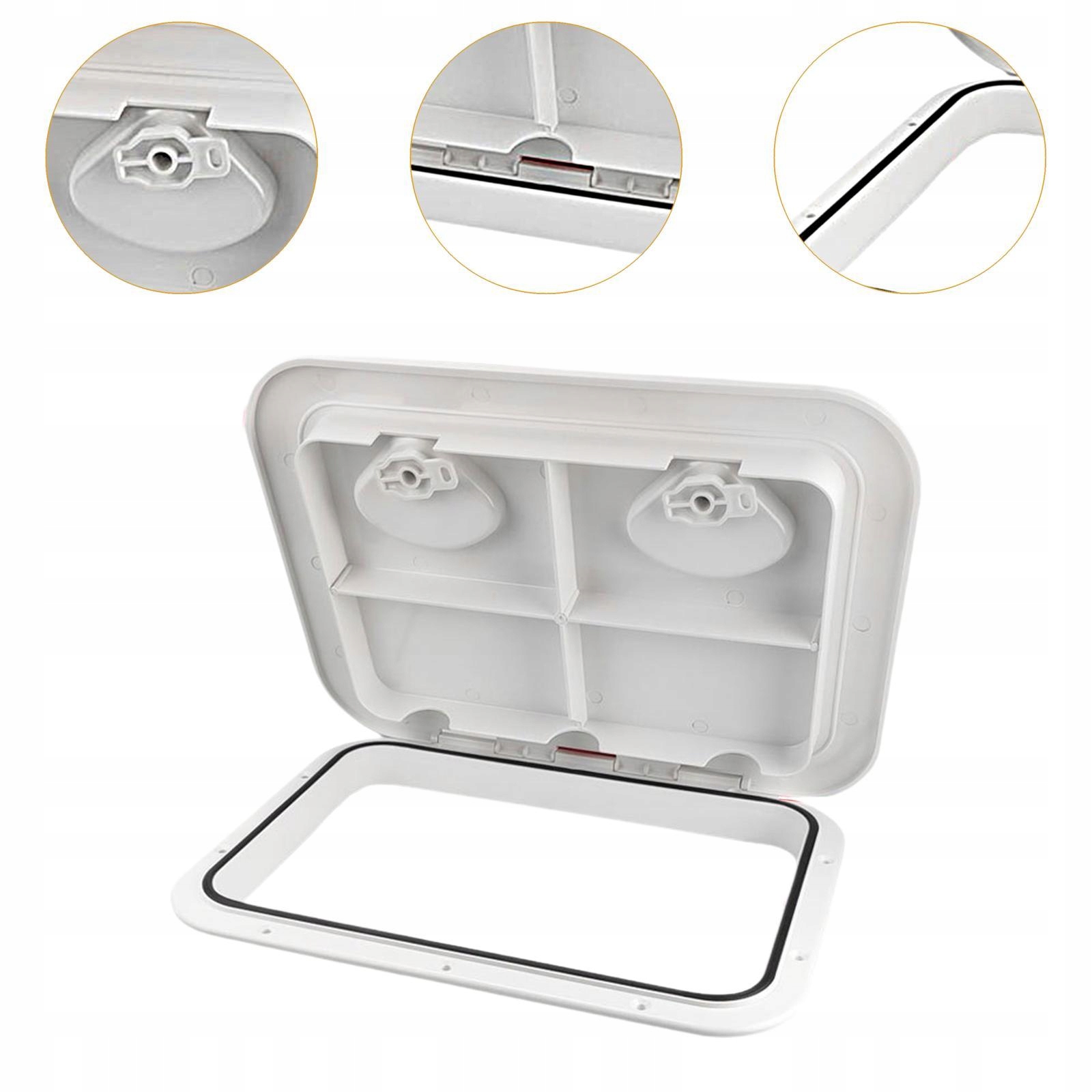 [Доступ к палубе морской лодки]: Эта крышка доступа к морской лодке предназначена для установки на внутренних или внешних плоских поверхностях. : Прямоугольная палуба из технического PP и нейлона, обеспечивающая долговечность и сопротивление износу. Дополнительная прочность и имеет нездоровую поверхность, обеспечивающая безопасность