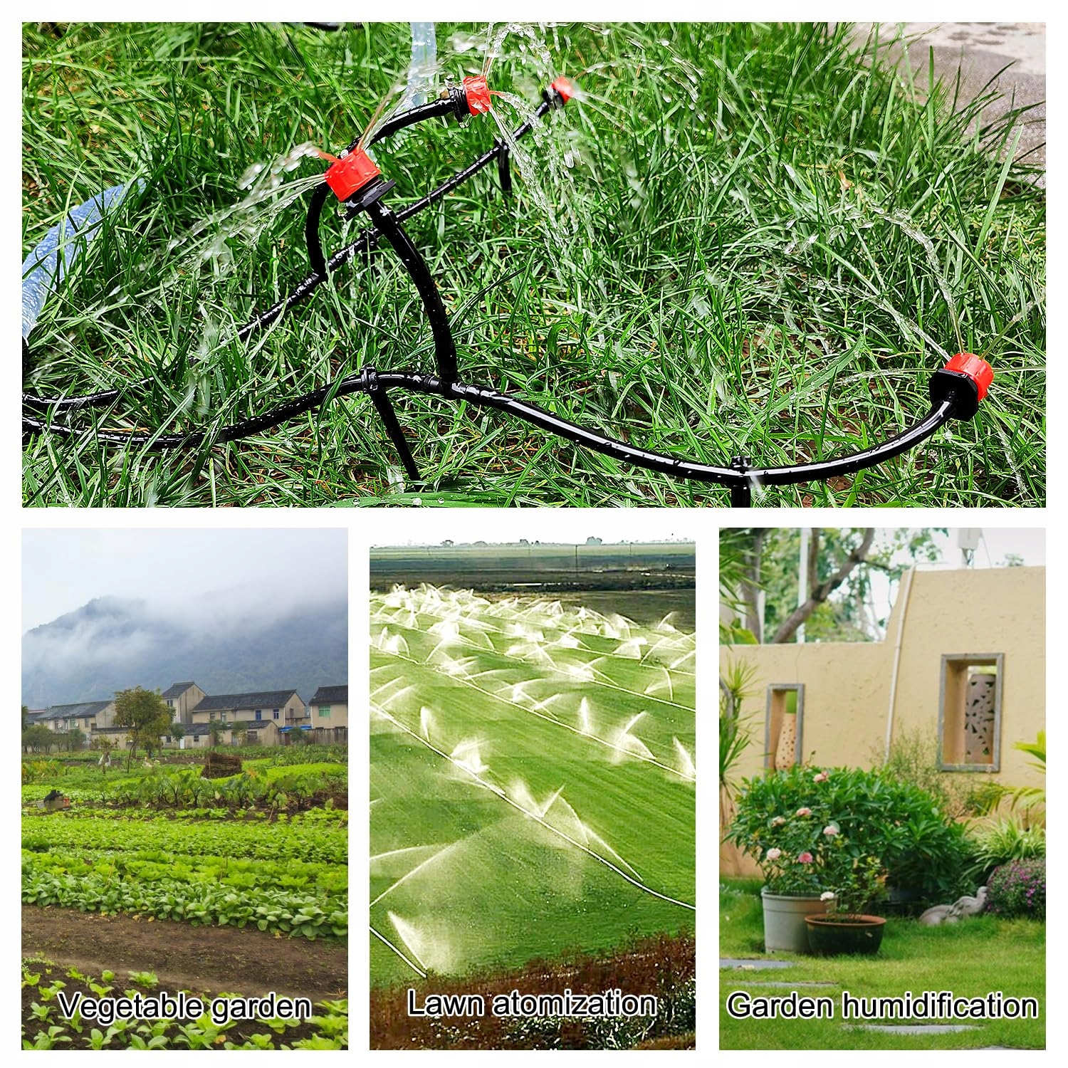 - Широкое применение: автоматический набор орошения подходит для любого места, например, овощной сад, газоно -брызги, туманная система охлаждения, удаление пыли, увлажнение сада.