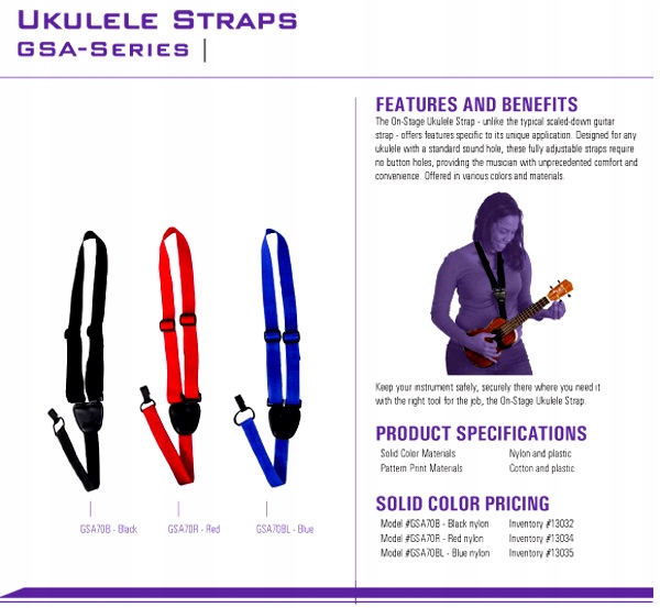 Плетенный ремень для укулеле, черный. Регулируемая длина, пластиковый крючок для прикрепления к инструменту.