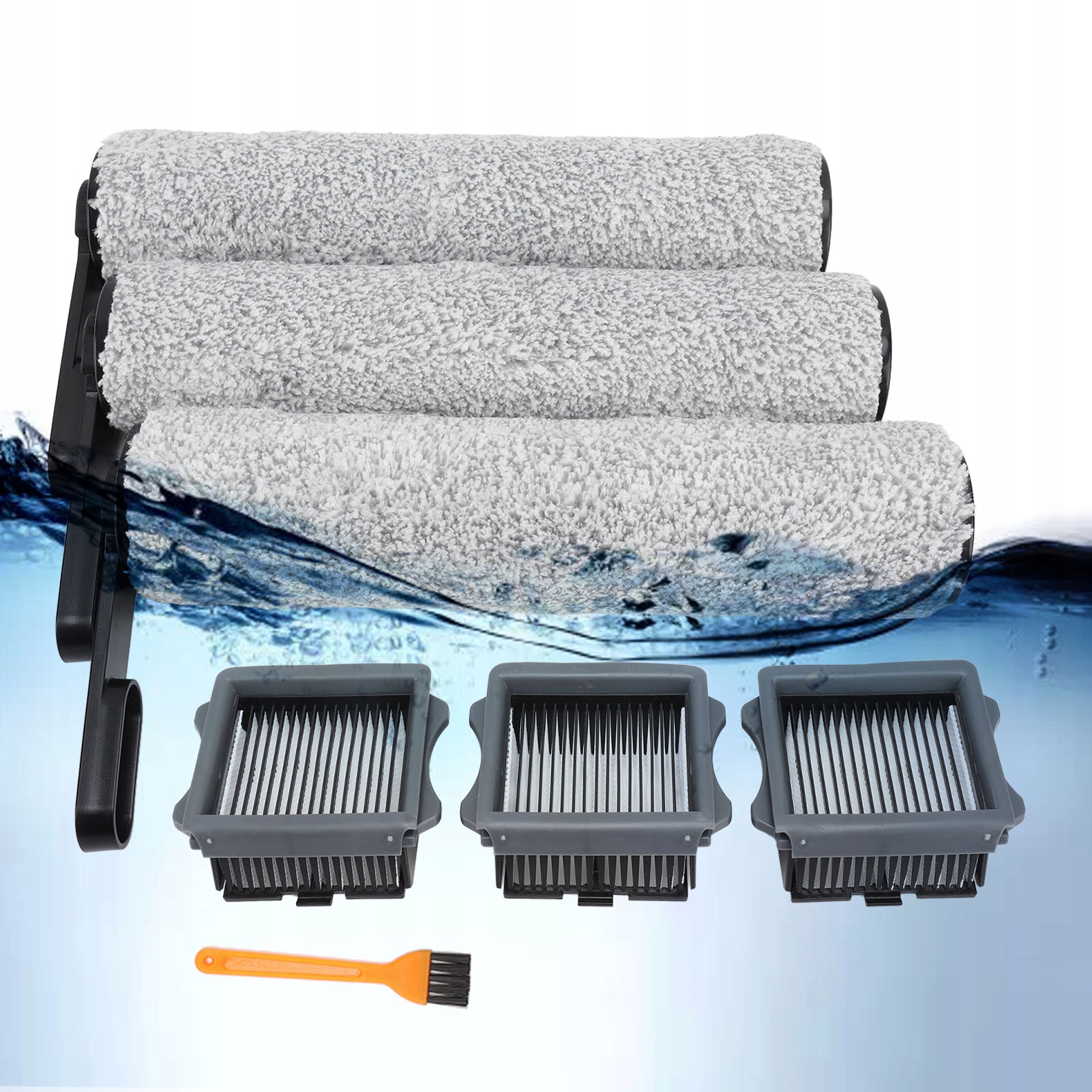 4. Полная замена аксессуаров: включает 3 роликовые щетки, 3 высокоэффективных воздушных фильтра для твердых частиц и 1 чистящую щетку. Заменив эти аксессуары, можно значительно повысить эффективность работы подметальной машины.
