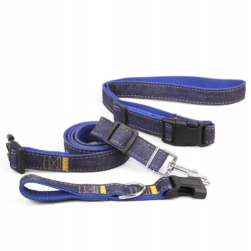 Предмет аукциона — ремень и поводок джинсового и синего цвета.
