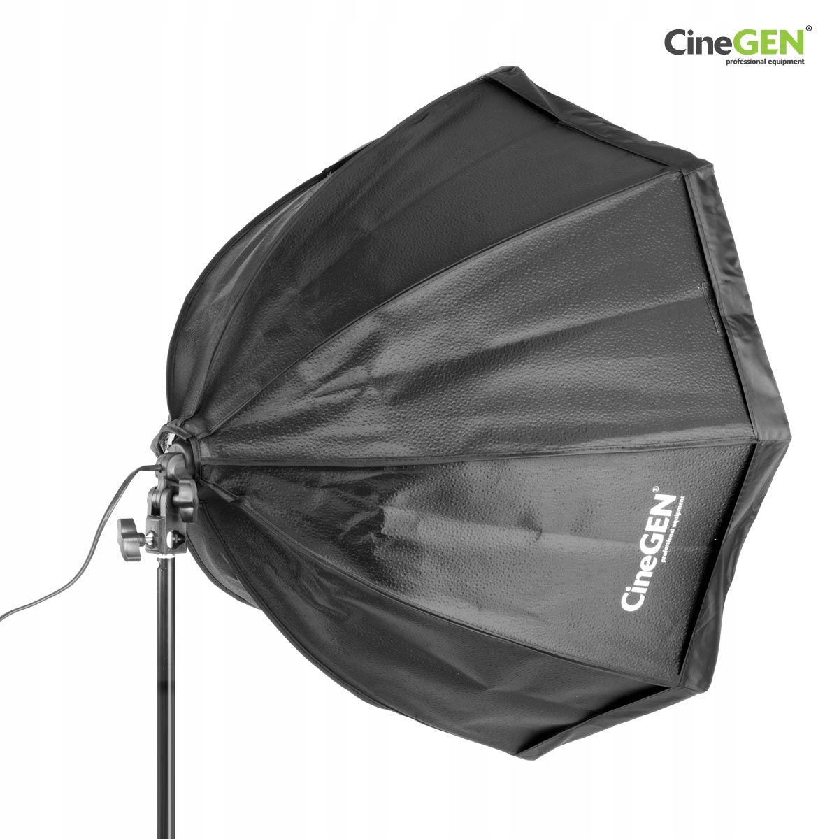 Навес софтбокс - восьмиугольник (OTCA) диаметром 90 см - изнутри он закончен с нажатым, серебряным материалом: свет равномерно распределен во внутренней части мягкой коробки , благодаря которой вся поверхность переднего диффузора сохранит идентичную силу, без эффекта ослабления интенсивности при уходе От центра до краев диффузора. Снаружи Softbox тусклый черный, благодаря которого он не отражает свет от других ламп. Стандартное прикрепление для освещения штативы оснащено. Высокое качество материалов, из которых софтбокс делается, гарантируется, что в течение многих лет операция