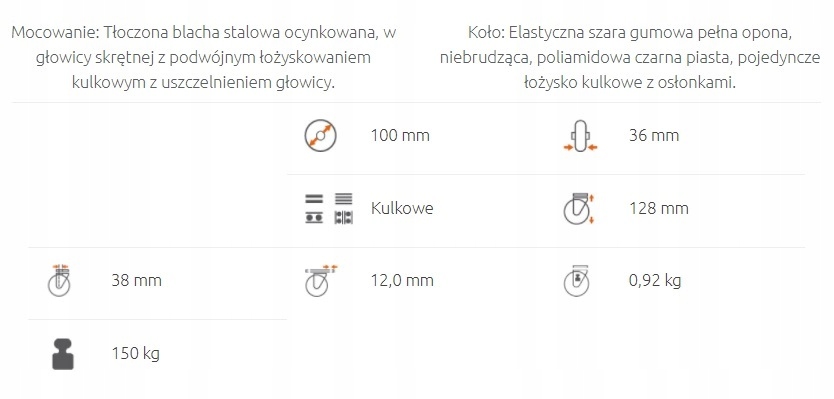 Гибкая серая РЕЗИНОВАЯ сплошная шина, не оставляющая следов, ступица из черного полиамида, одинарный шариковый подшипник с шапками. Качество прокатки колес отличное. Шина поглощает неровности.