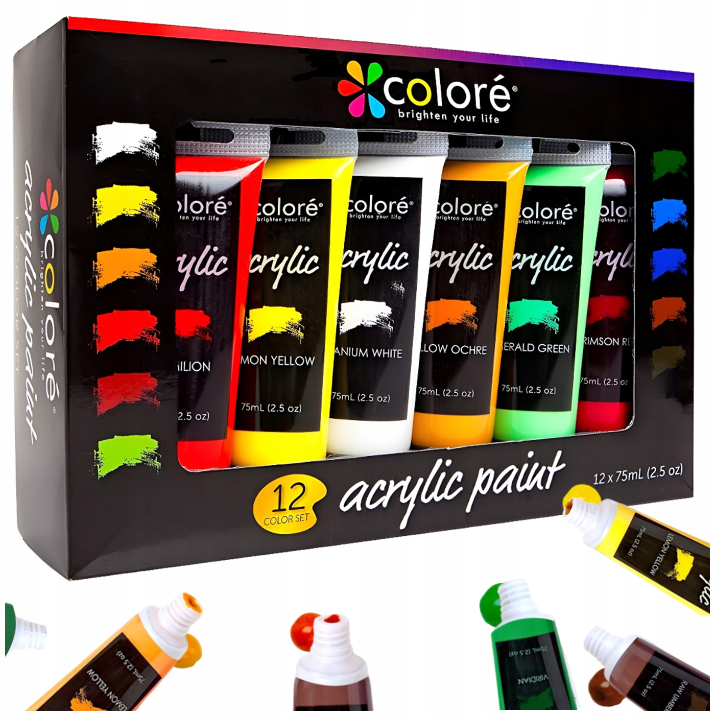 НАБОР ПРОФЕССИОНАЛЬНЫХ АКРИЛОВЫХ КРАСОК - 12 ЦВЕТОВ по 75 МЛ