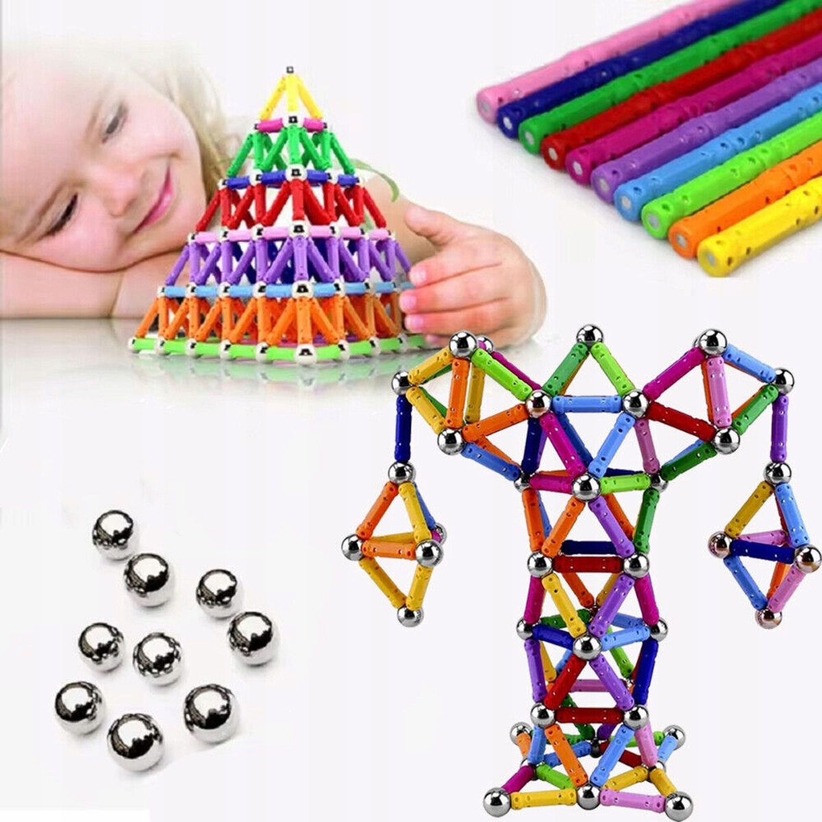 ☑️ Набор из 206 предметов: 142 магнитных стержня + 64 магнитных шарика