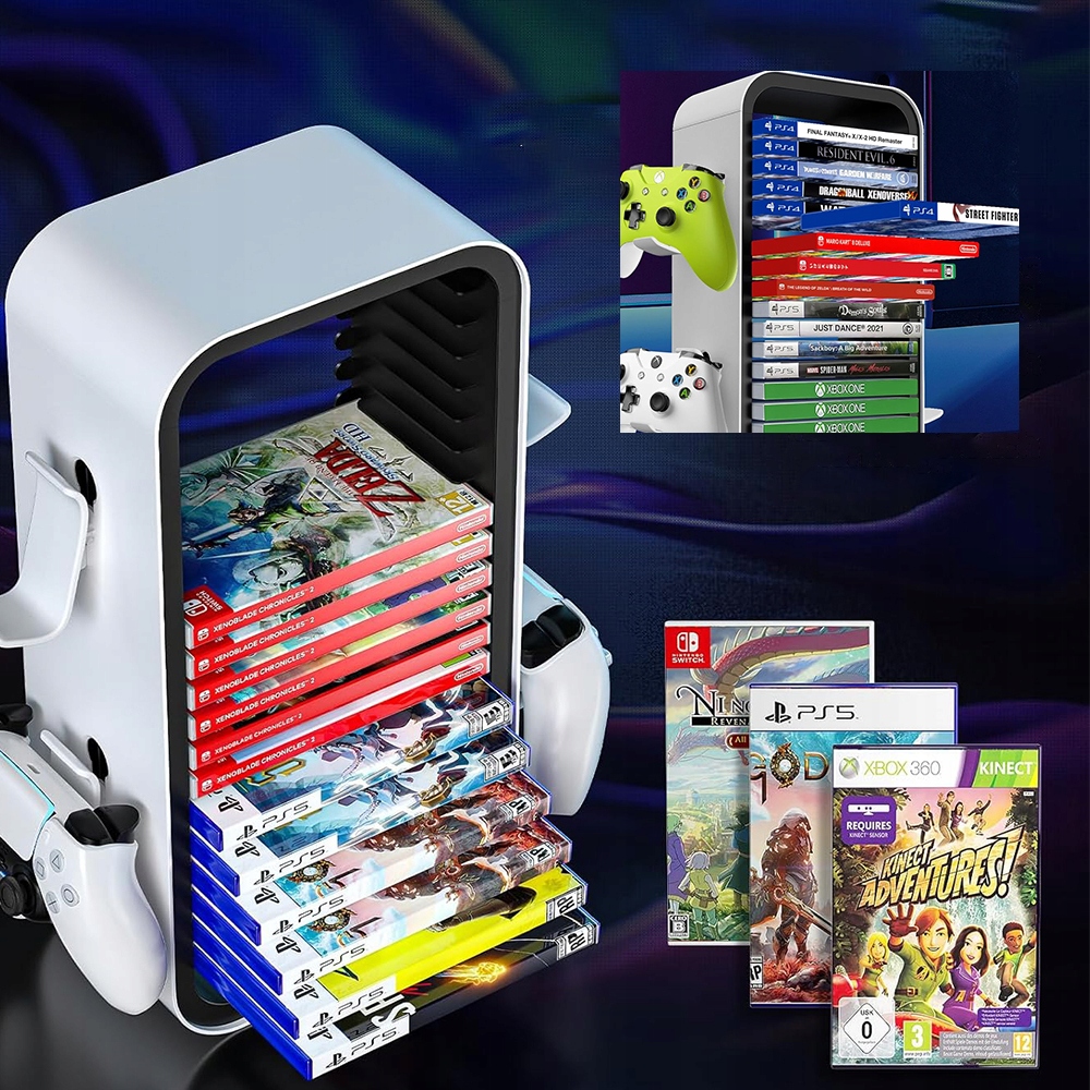 Игровой органайзер представляет собой стильное и эффективное решение для хранения до 18 игр и нескольких контроллеров — идеально подходит для любой игровой системы.