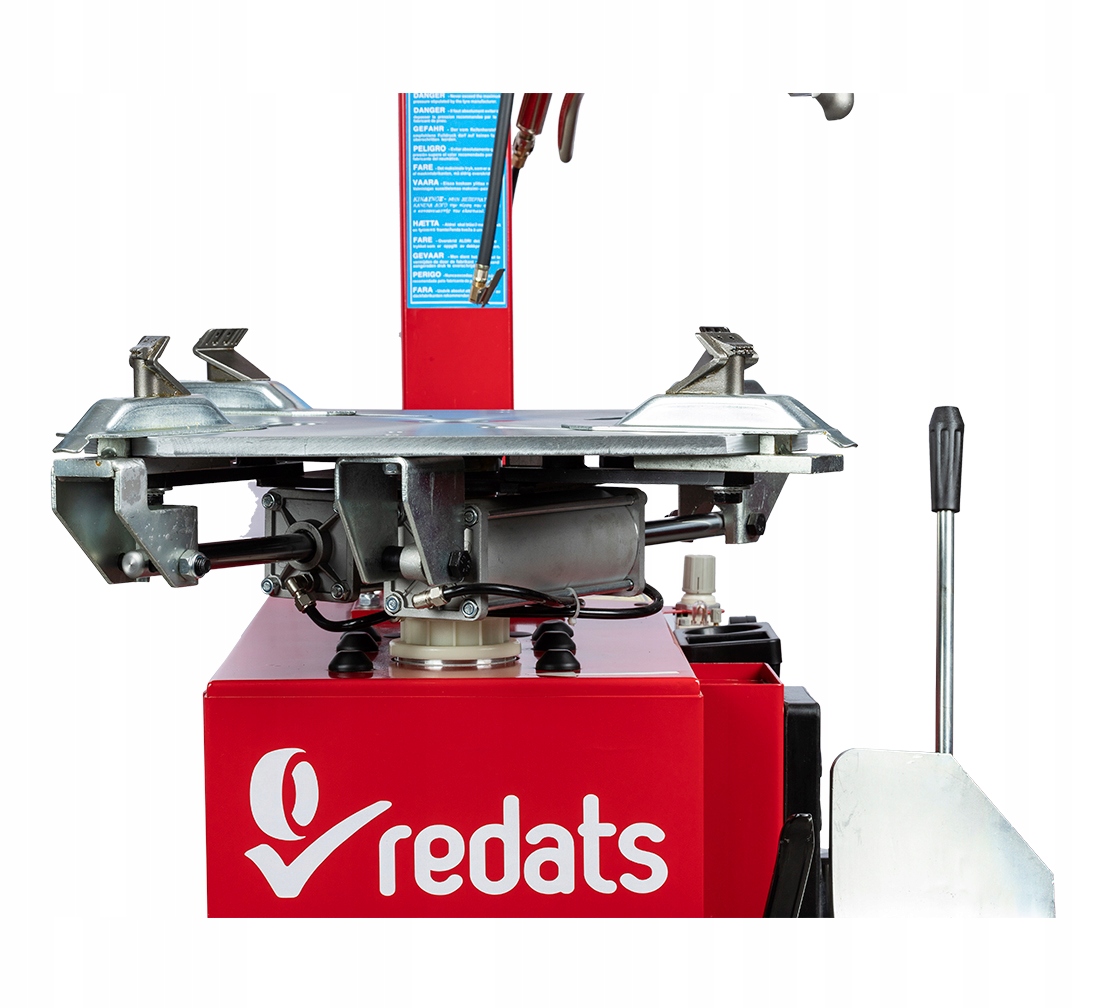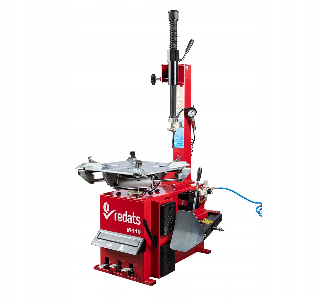 REDATS M-110 — это полуавтоматический шиномонтажный станок с рычагом, который можно вручную отклонить в сторону и фиксировать с помощью винта. Ножка крепления наклоняется вертикально и фиксируется рычагом с эксцентриковым механизмом. Простая, прочная конструкция и несложное управление делают его устройством, созданным для вулканизаторов, ищущих проверенные решения и ценящих высокое качество изготовления. Преимуществом полуавтоматической конструкции является возможность наклона рычага в сторону, что особенно желательно в небольших шиномонтажных мастерских или мобильных сервисных центрах из-за экономии места.