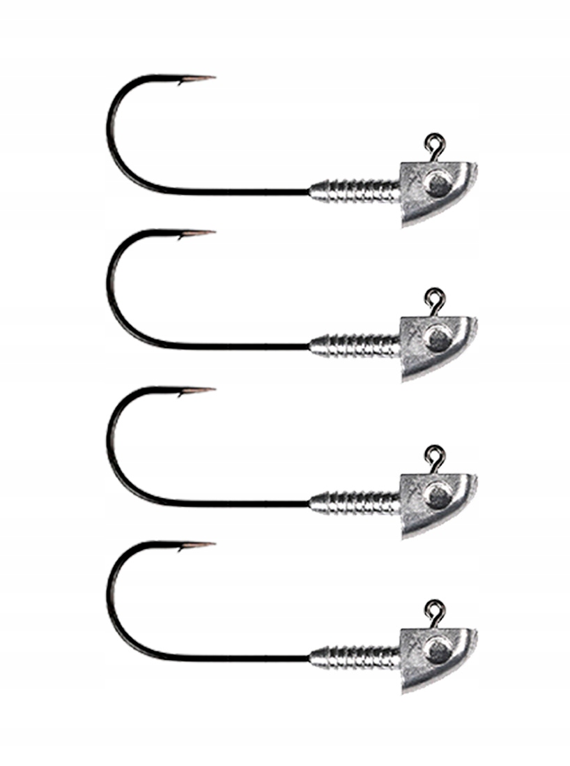 Все головки, подобранные по размеру и усилению, имеют микроребра для удержания резины. Японский крючок позволяет на 100% подсечь рыбу. Лезвие крючка заточено химически и не тупится. Размер головки адаптирован под приманки.